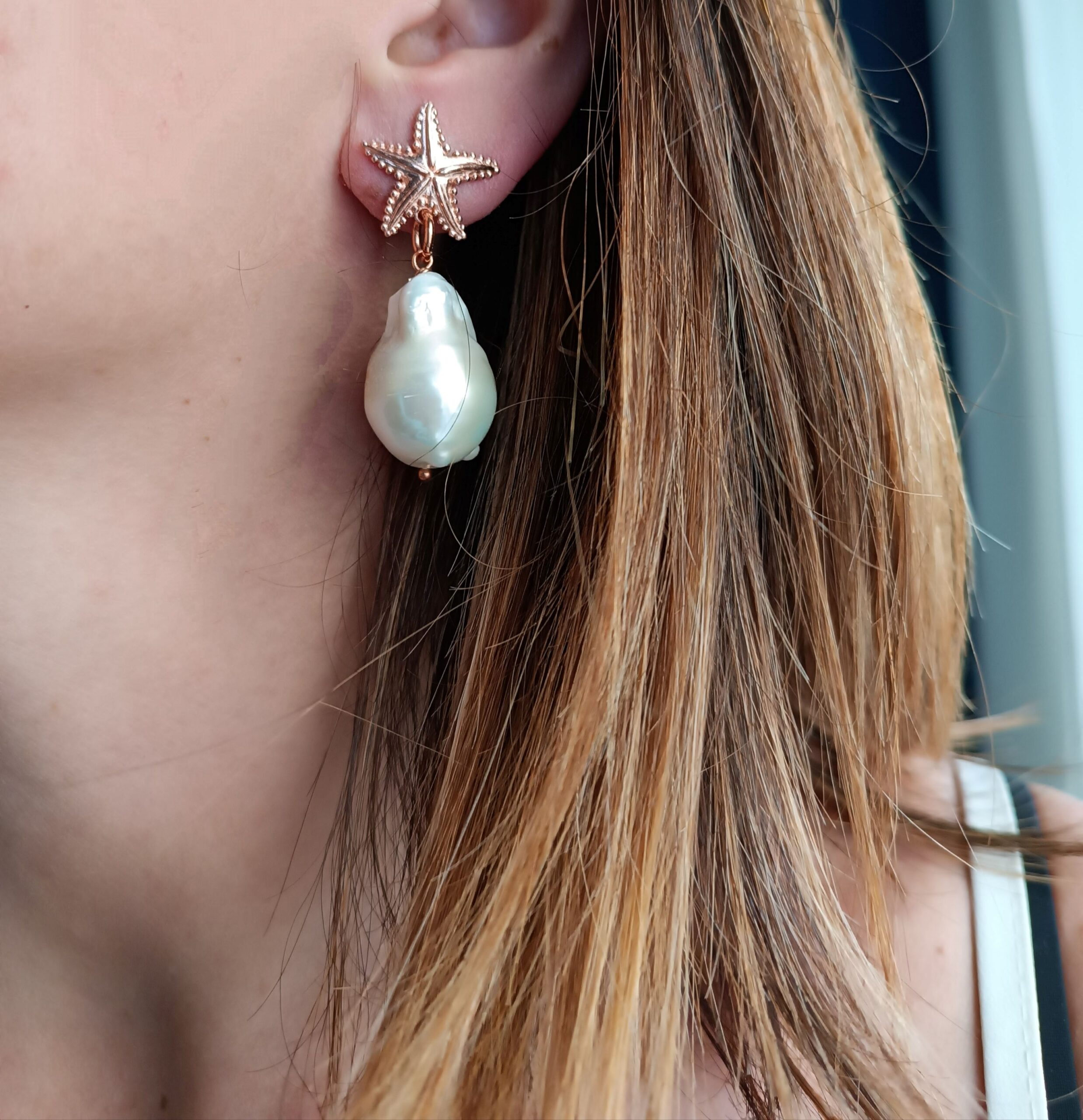 Sophisticated earrings made with fine baroque pearls and hand-forged starfish studs.