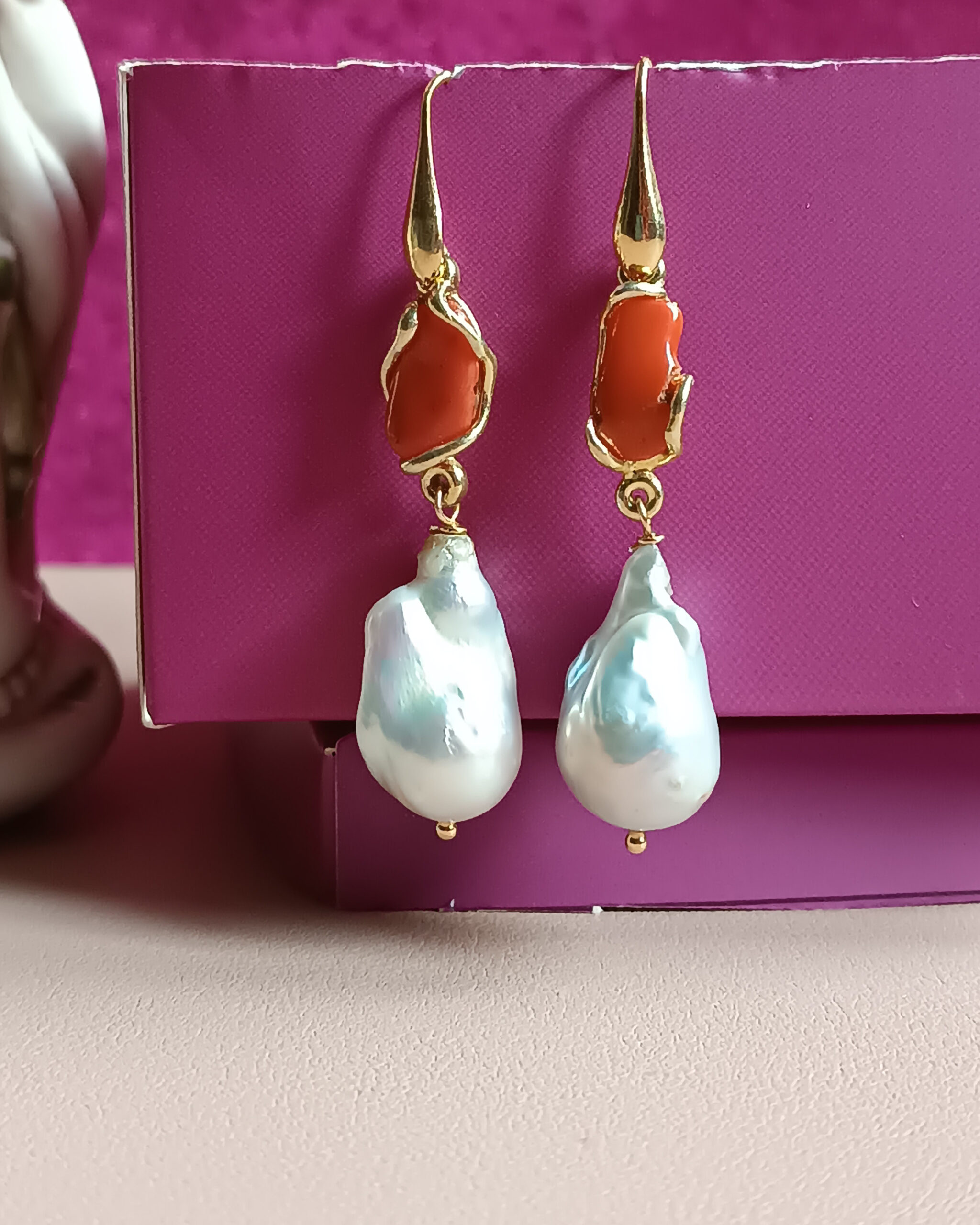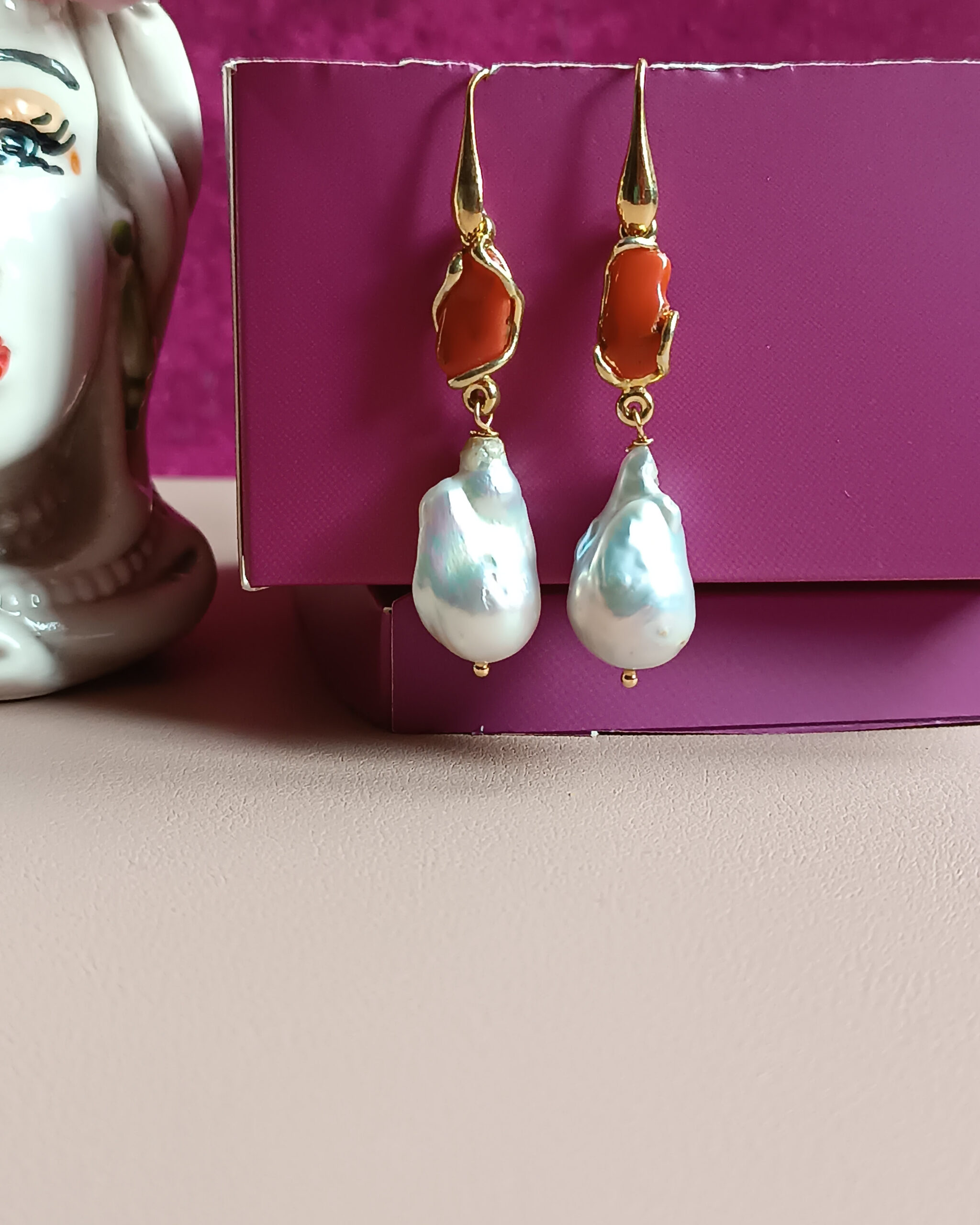 925 Drop Earrings with Freshwater Pearls and Mediterranean Coral