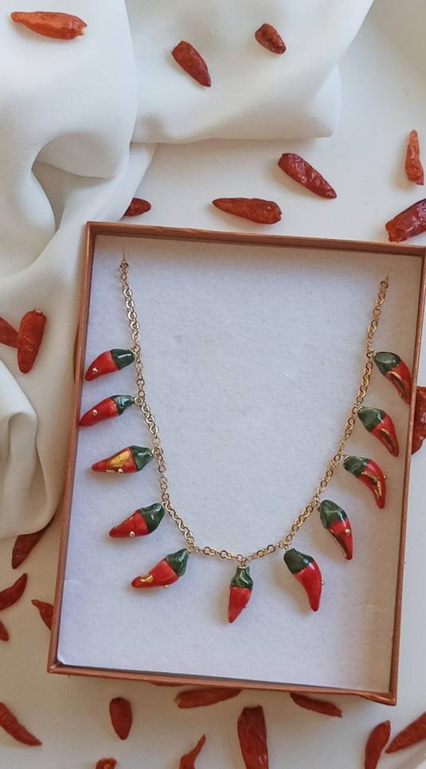 925 Gold Chain Necklace with Sicily Ceramic Peppers