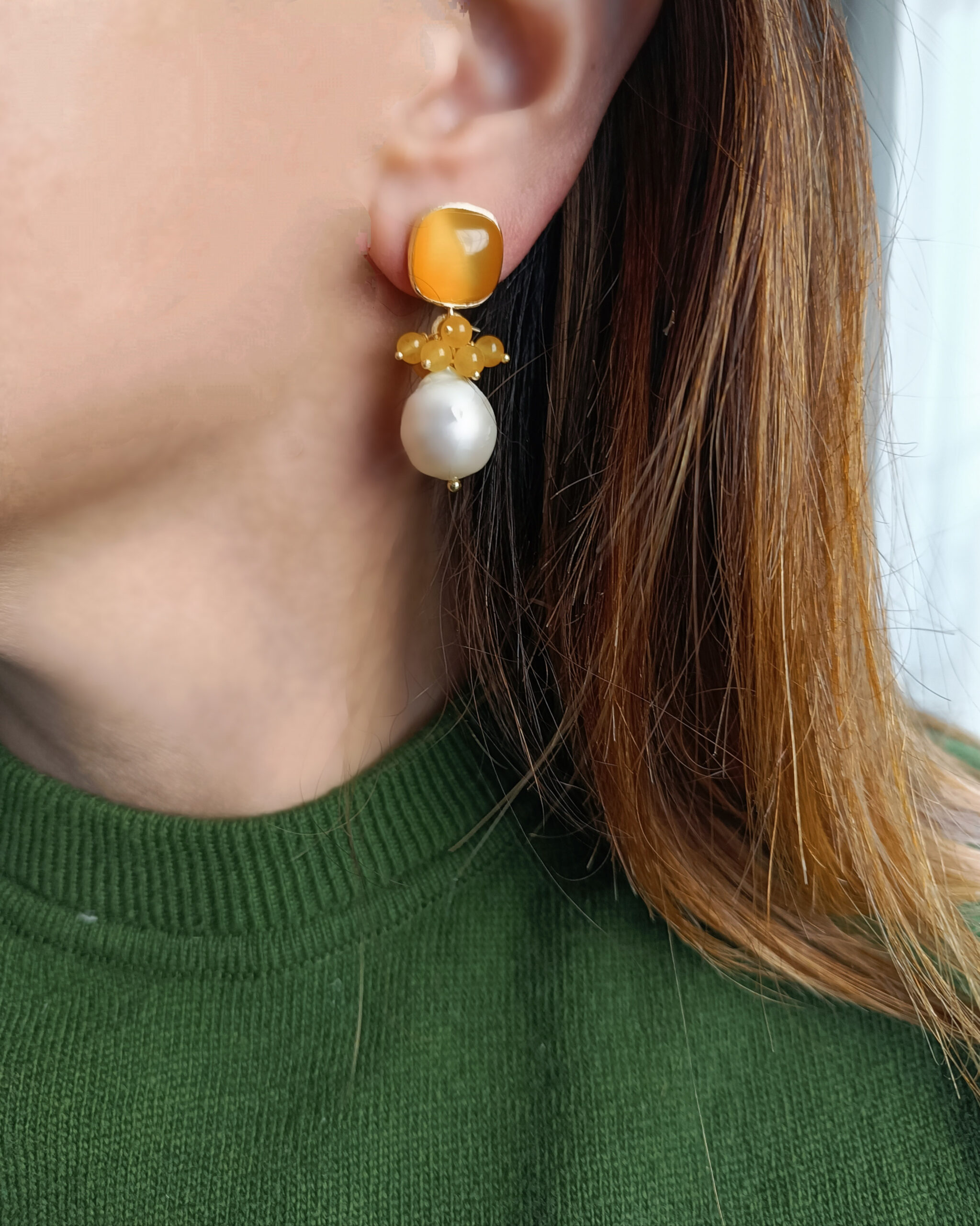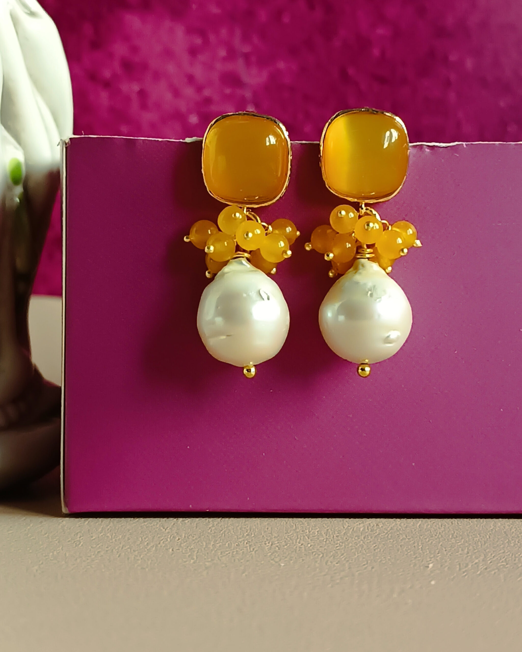 Baroque Pearl Earrings with Yellow Chrysoberyl Stones