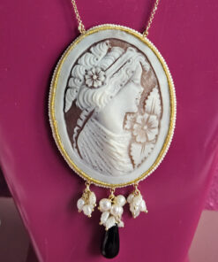 The cameo face was forged from the natural shell through careful and painstaking handwork, which never leaves even the smallest details to chance.