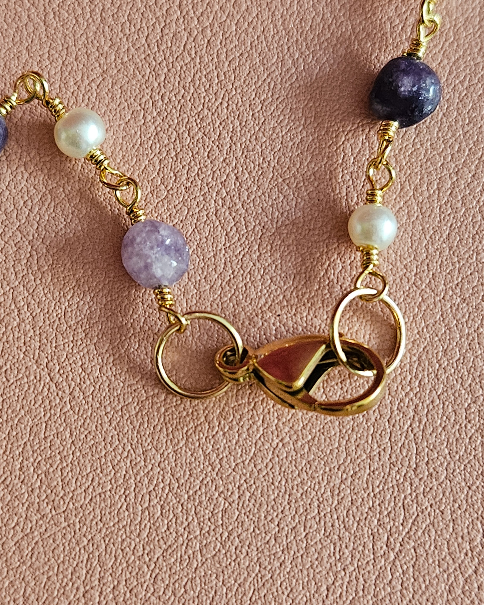 A very eye-catching necklace that will definitely stand out for its ethnic style, but embellished by the special chain with amethyst and pearls.