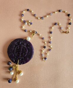 Chain Necklace with Amethyst, Pearls and Carved Jade Pendant