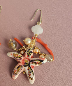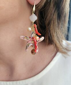 These earrings have a lively and original design inspired by the sea. They are made with natural pearls, red coral branches that give energy and color, and small pink ceramic starfish that add a playful and bright touch. Lightweight and unique, they embody all the beauty and freshness of summer, perfect for those who love to carry a bit of the marine atmosphere with them.