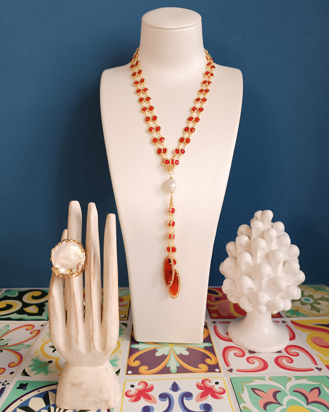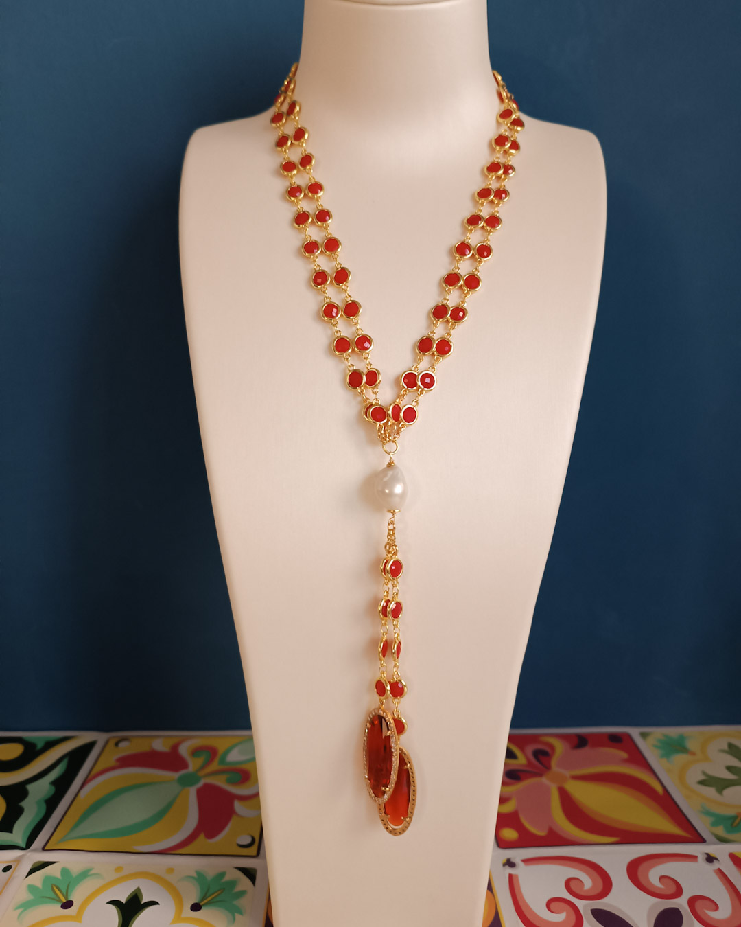 A striking double necklace to match a casual look and perfect to complete an elegant look.