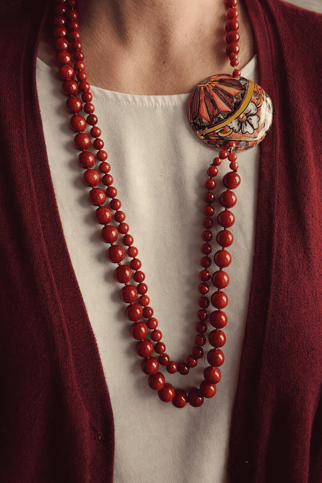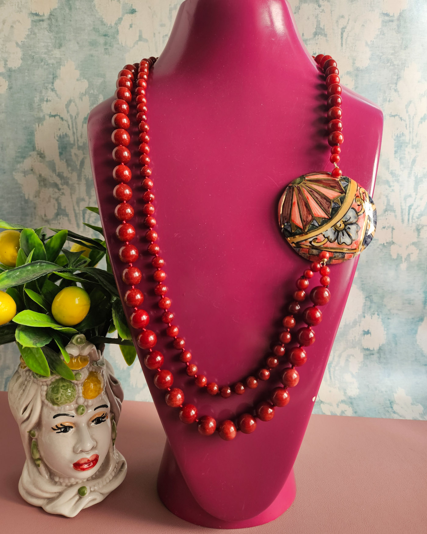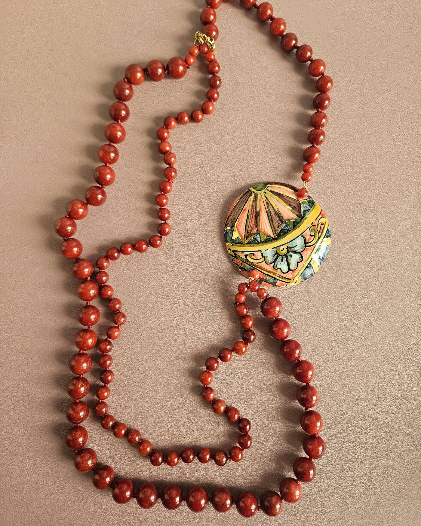Double Sicilian Necklace with Ruby Jade Stones and Sicily Ceramic