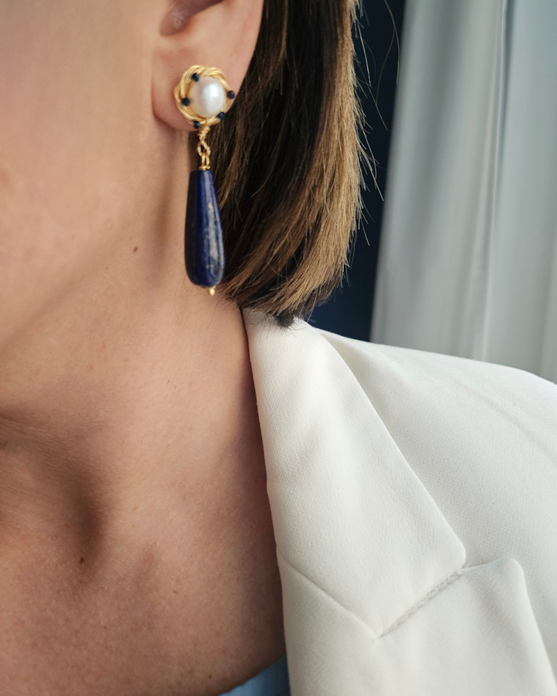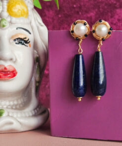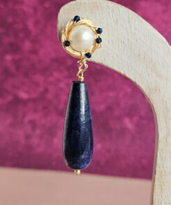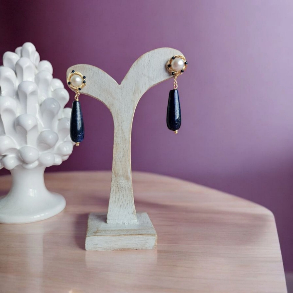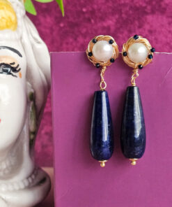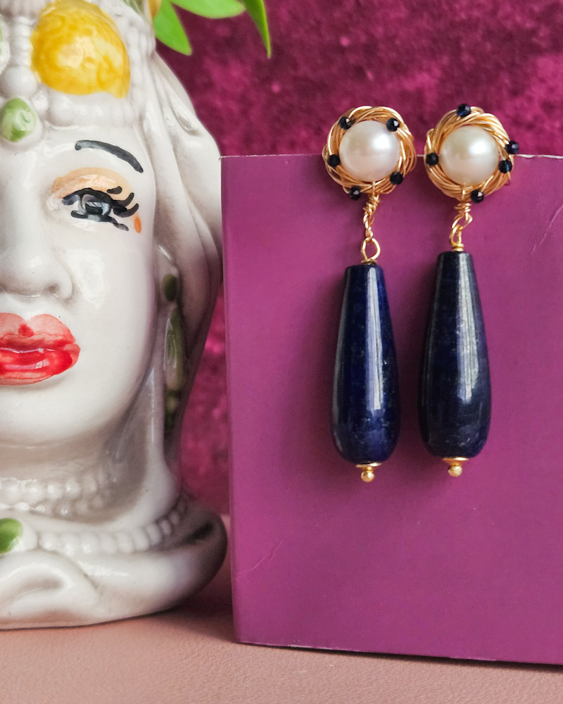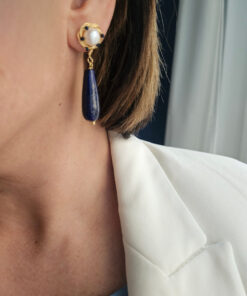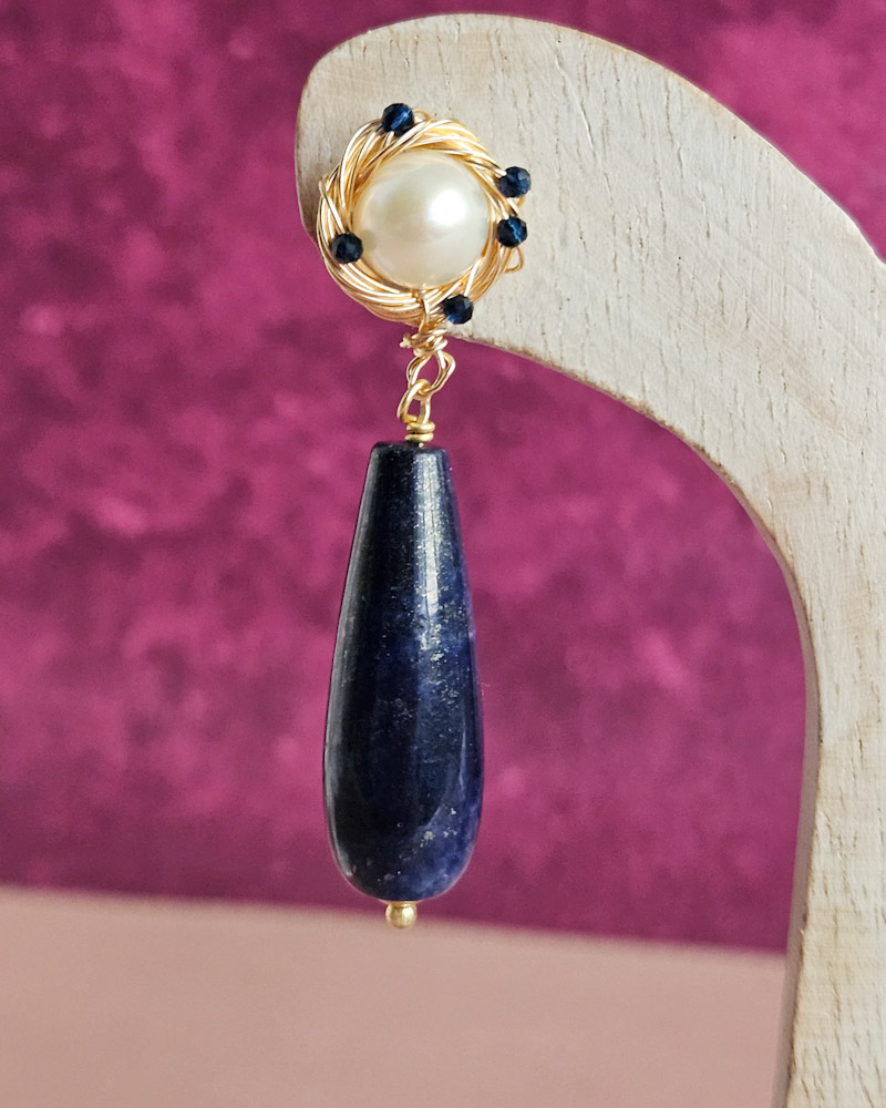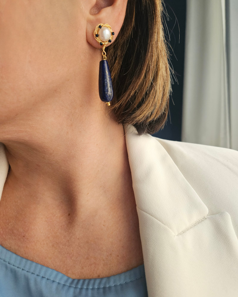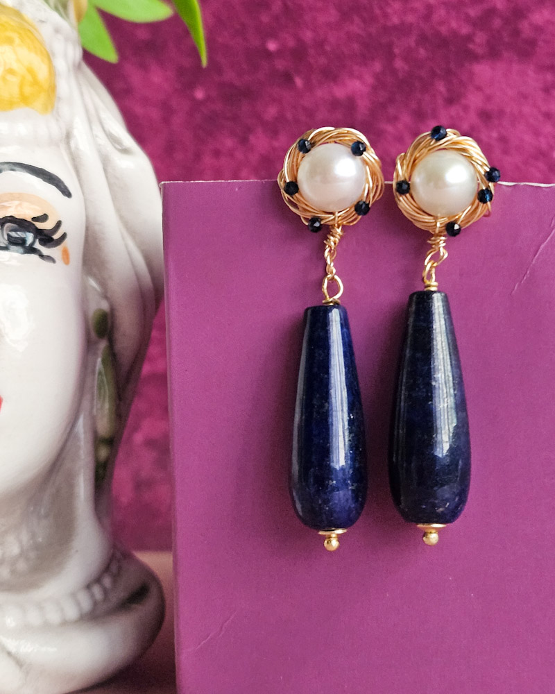 Drop Earrings with Blue Lapis Drops and Freshwater Pearls