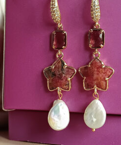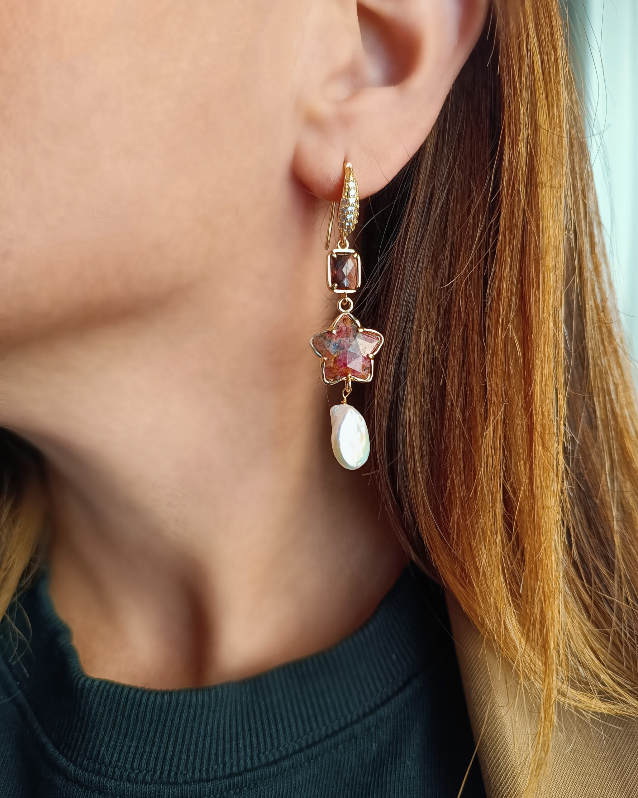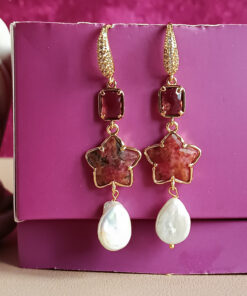 Thanks to Rhodonite and the innate elegance of baroque drop pearls, these earrings are extremely refined but with a touch of originality, given precisely by the very special star-shaped connectors.