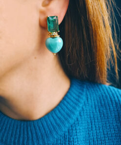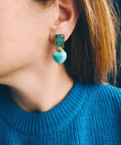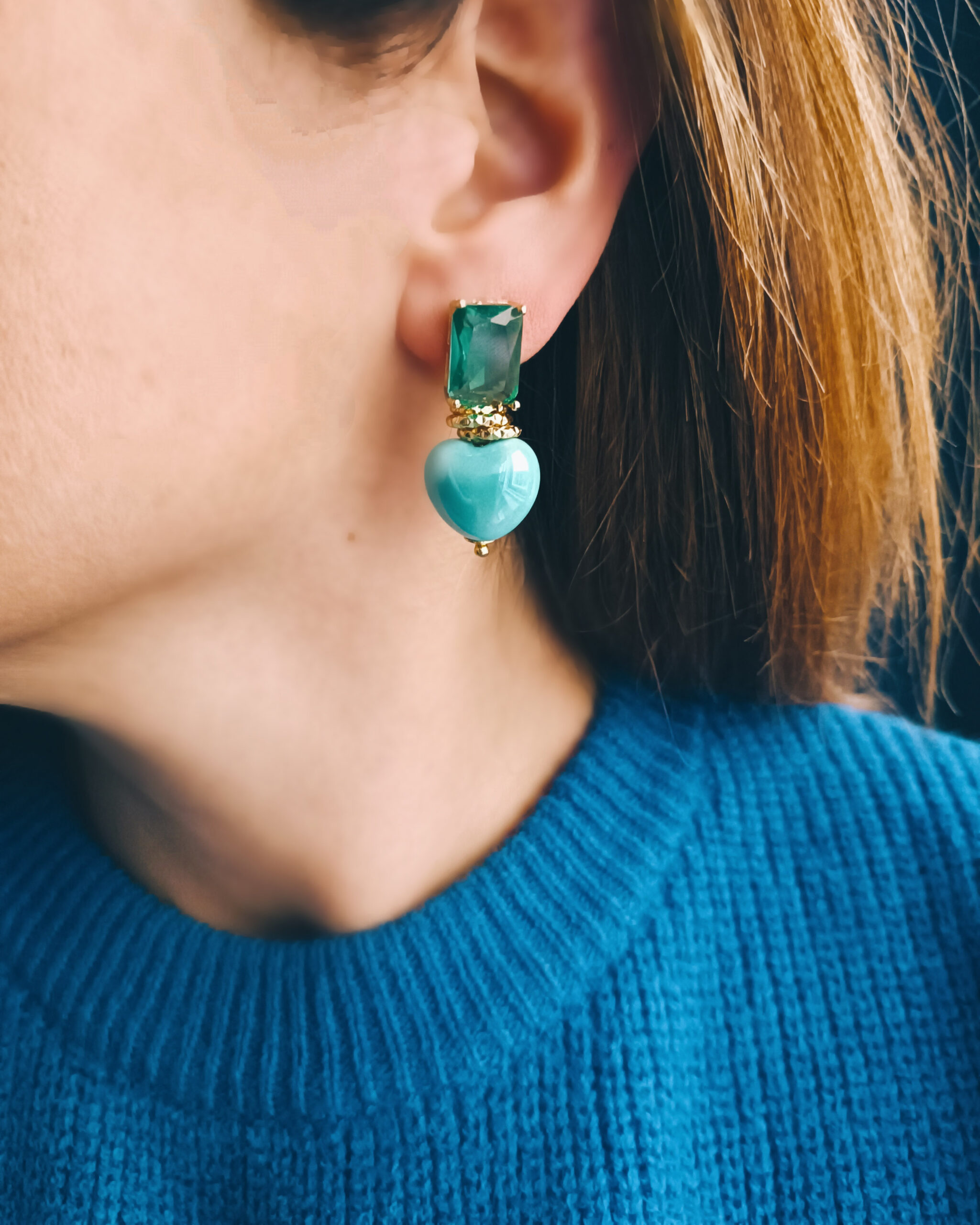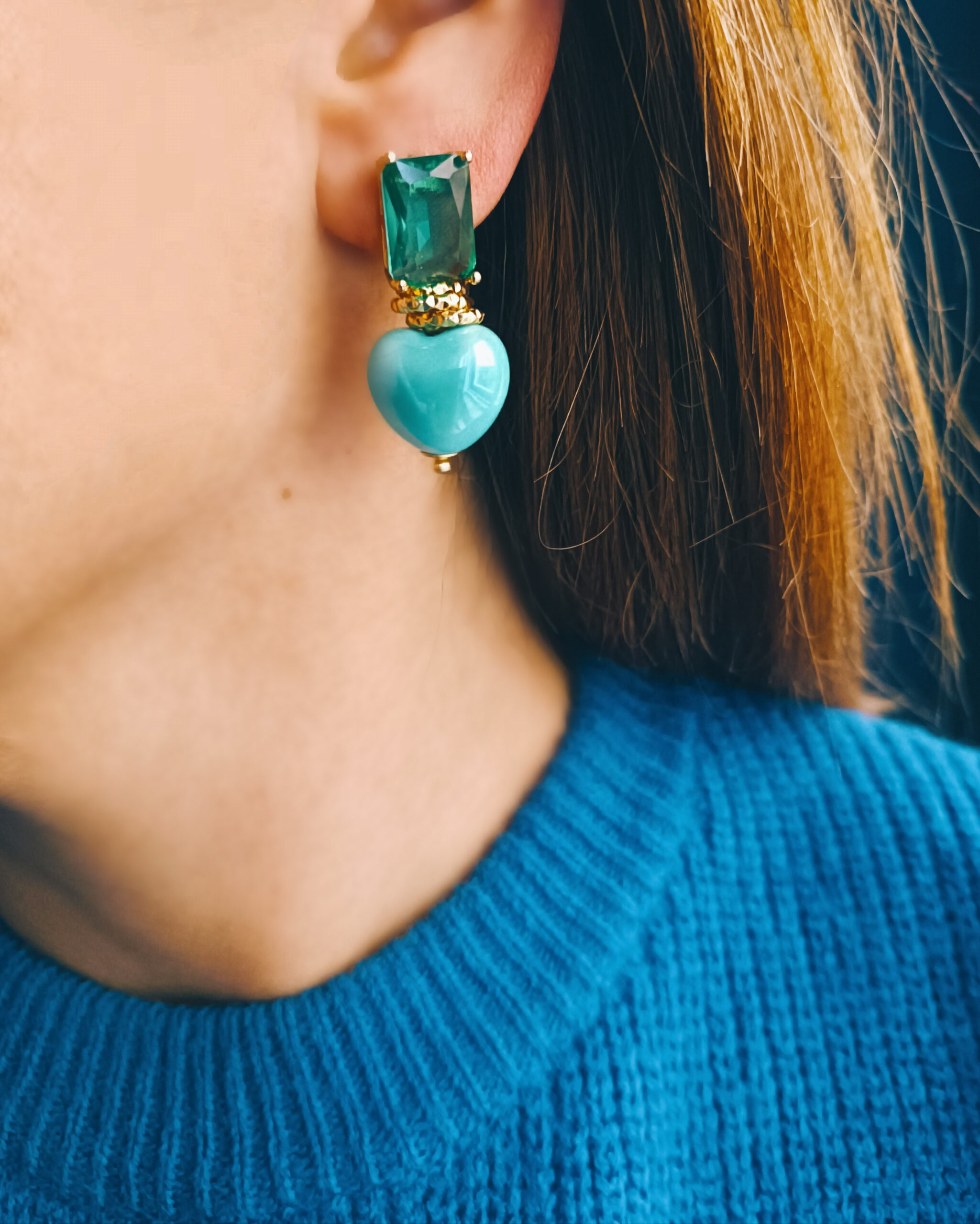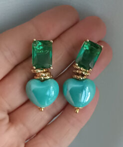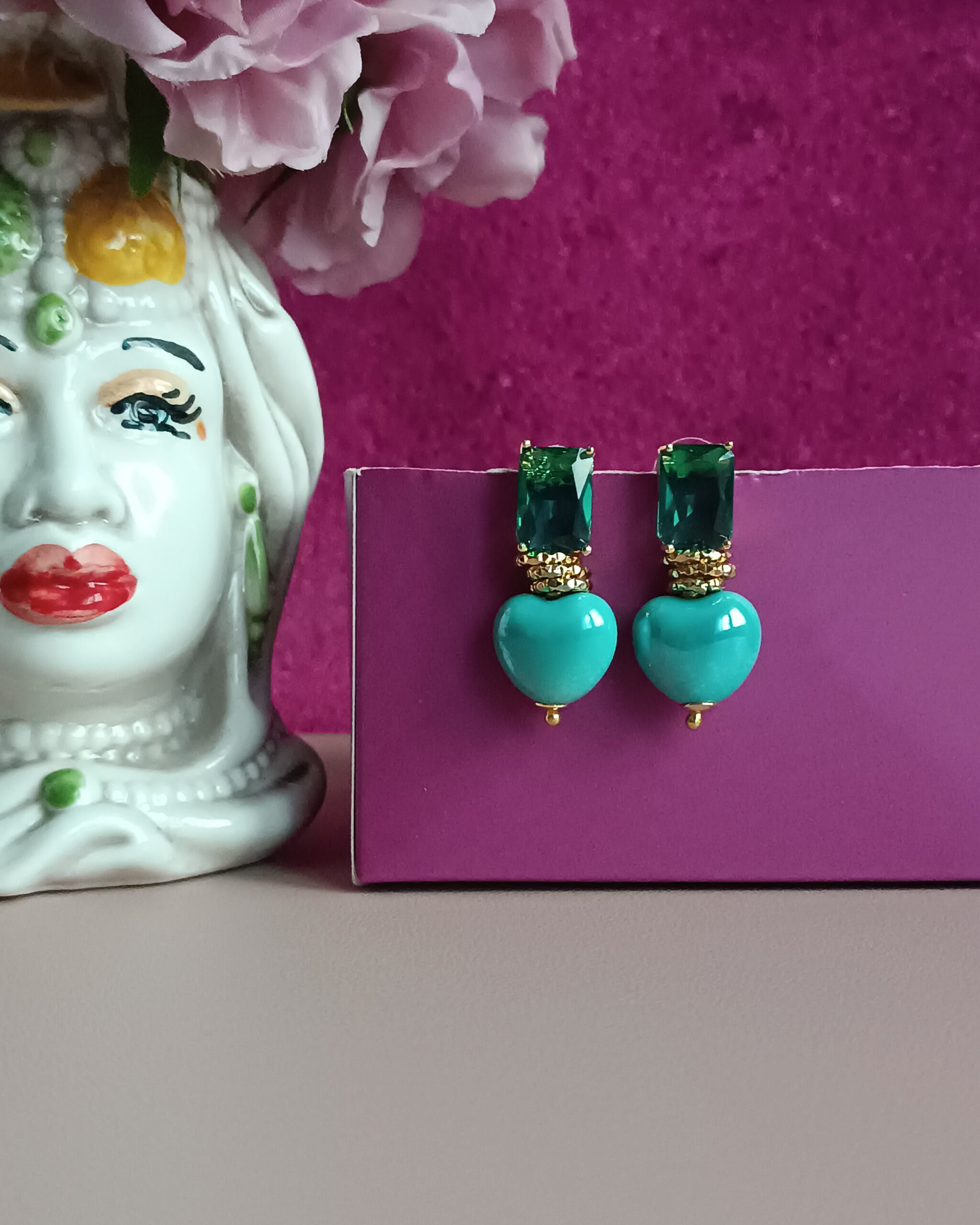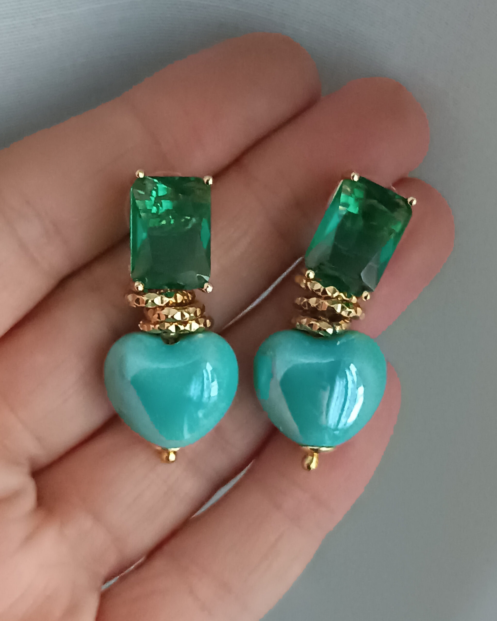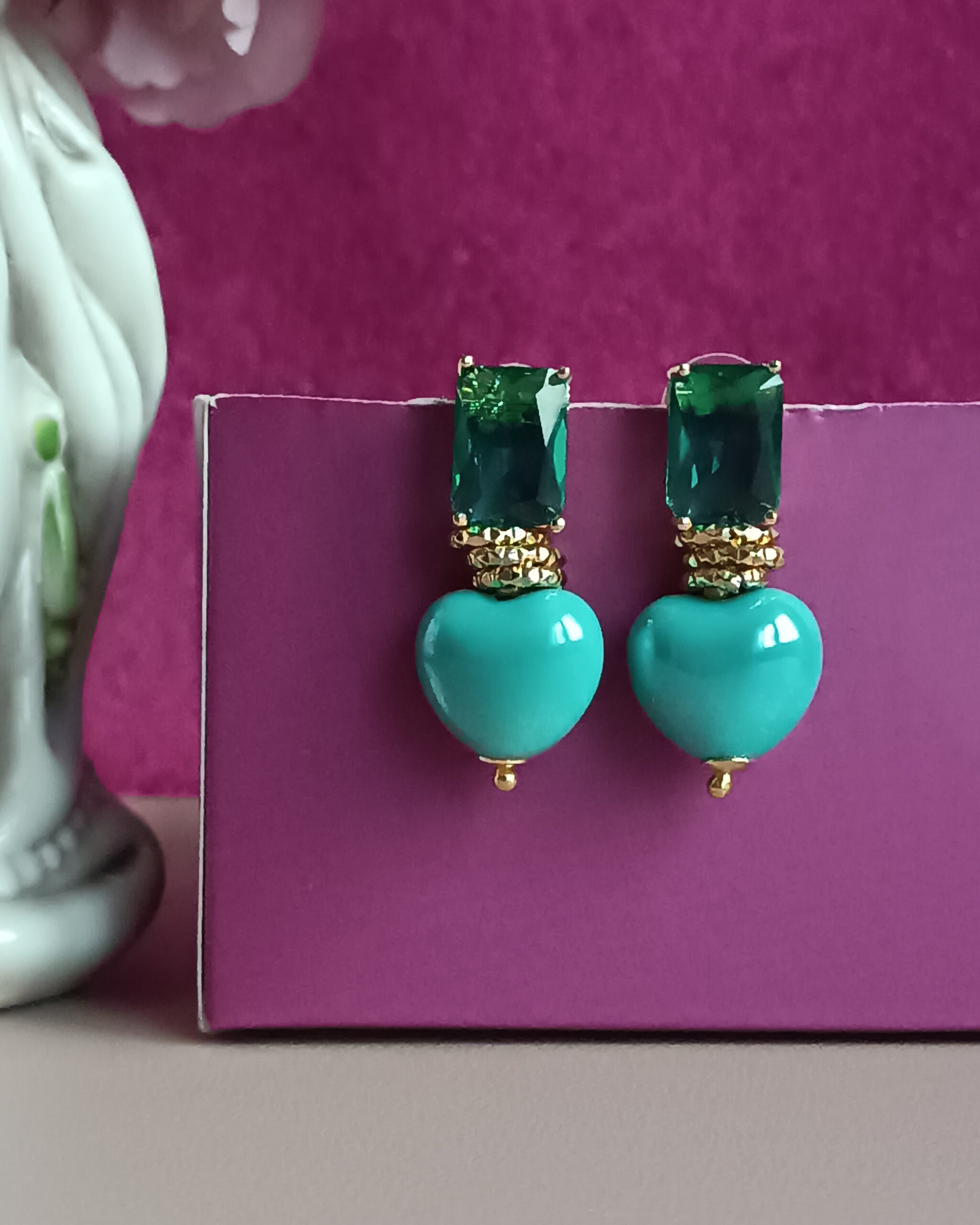 Earrings SUGAR with Ceramic Hearts and Aqua Green Crystals