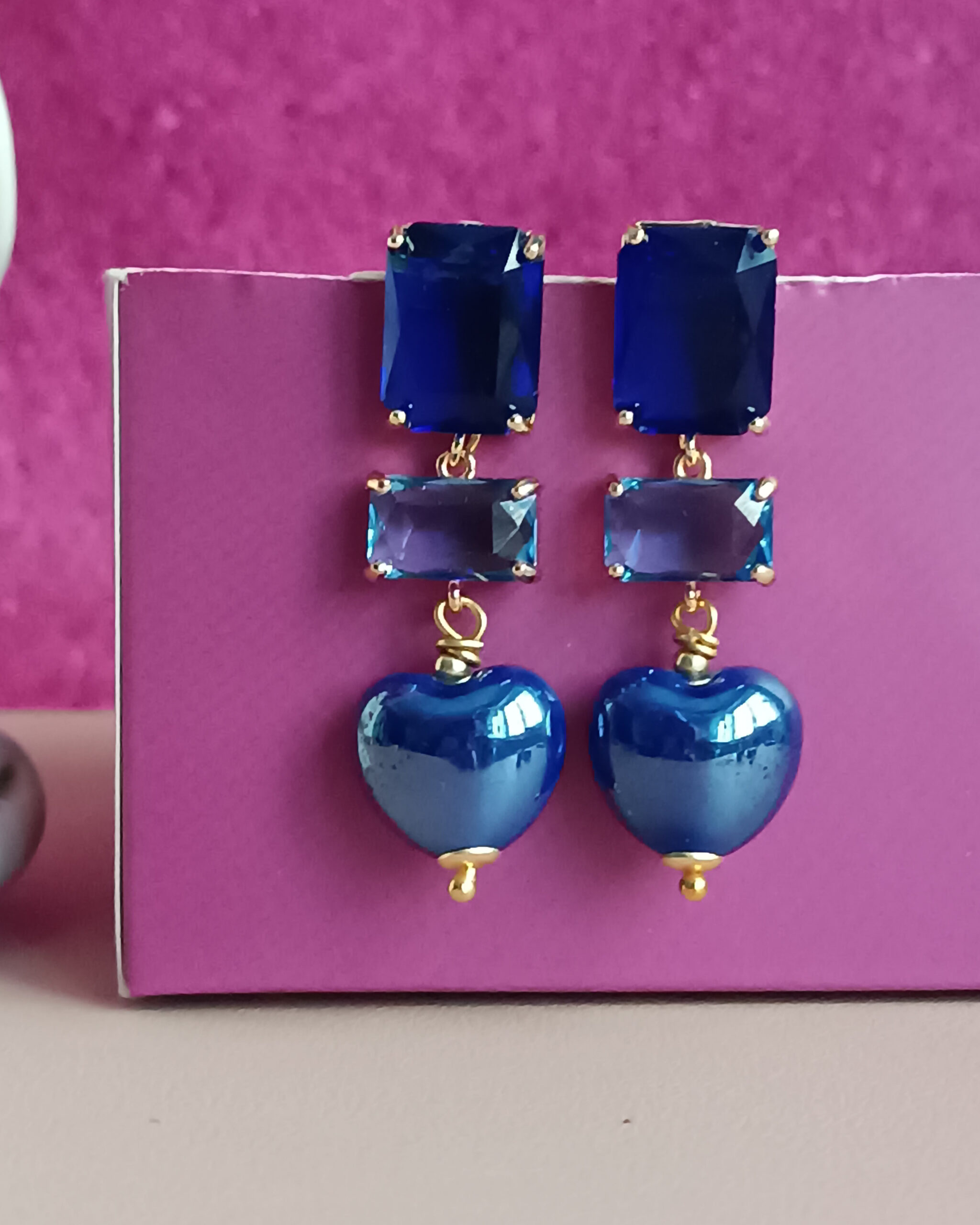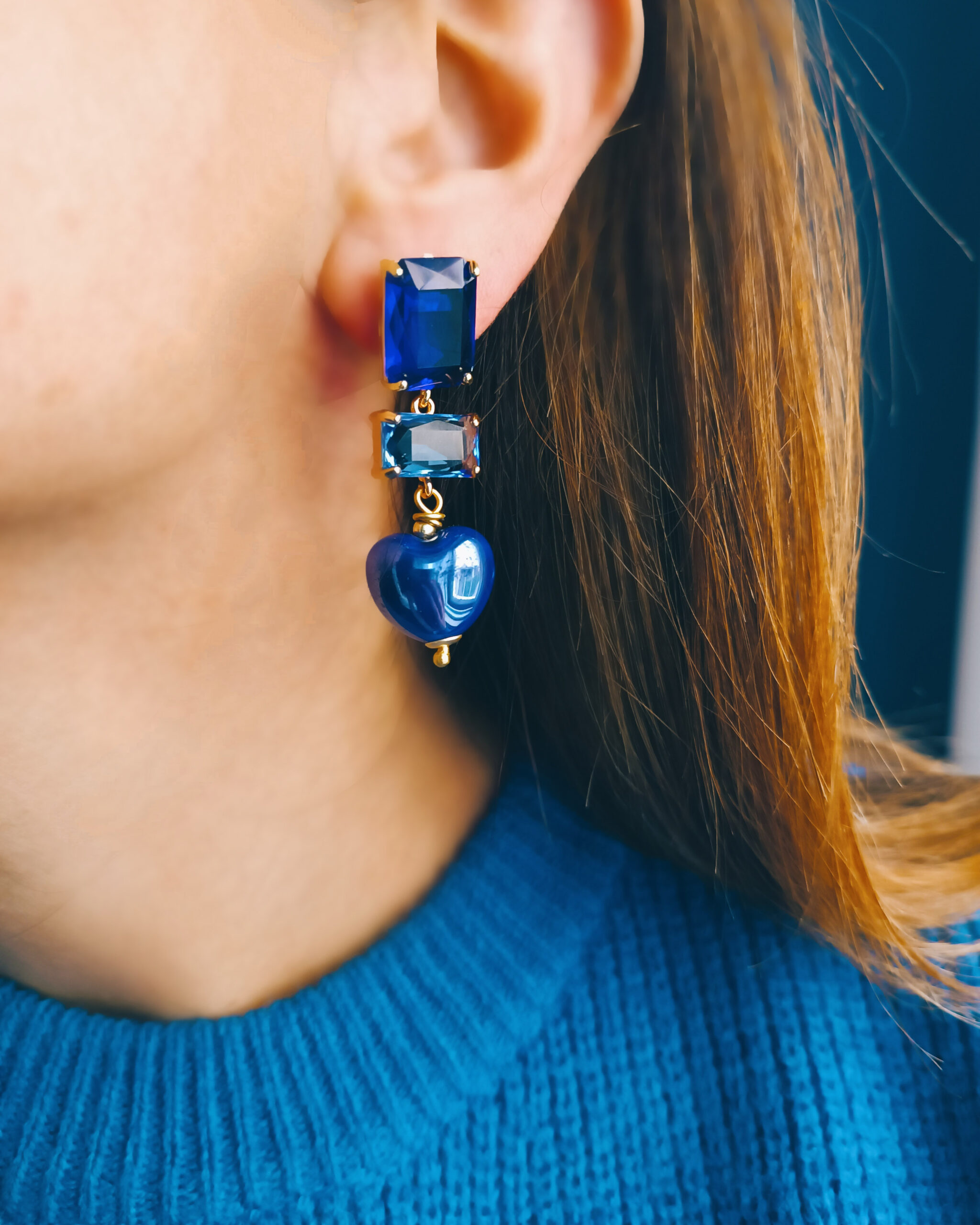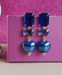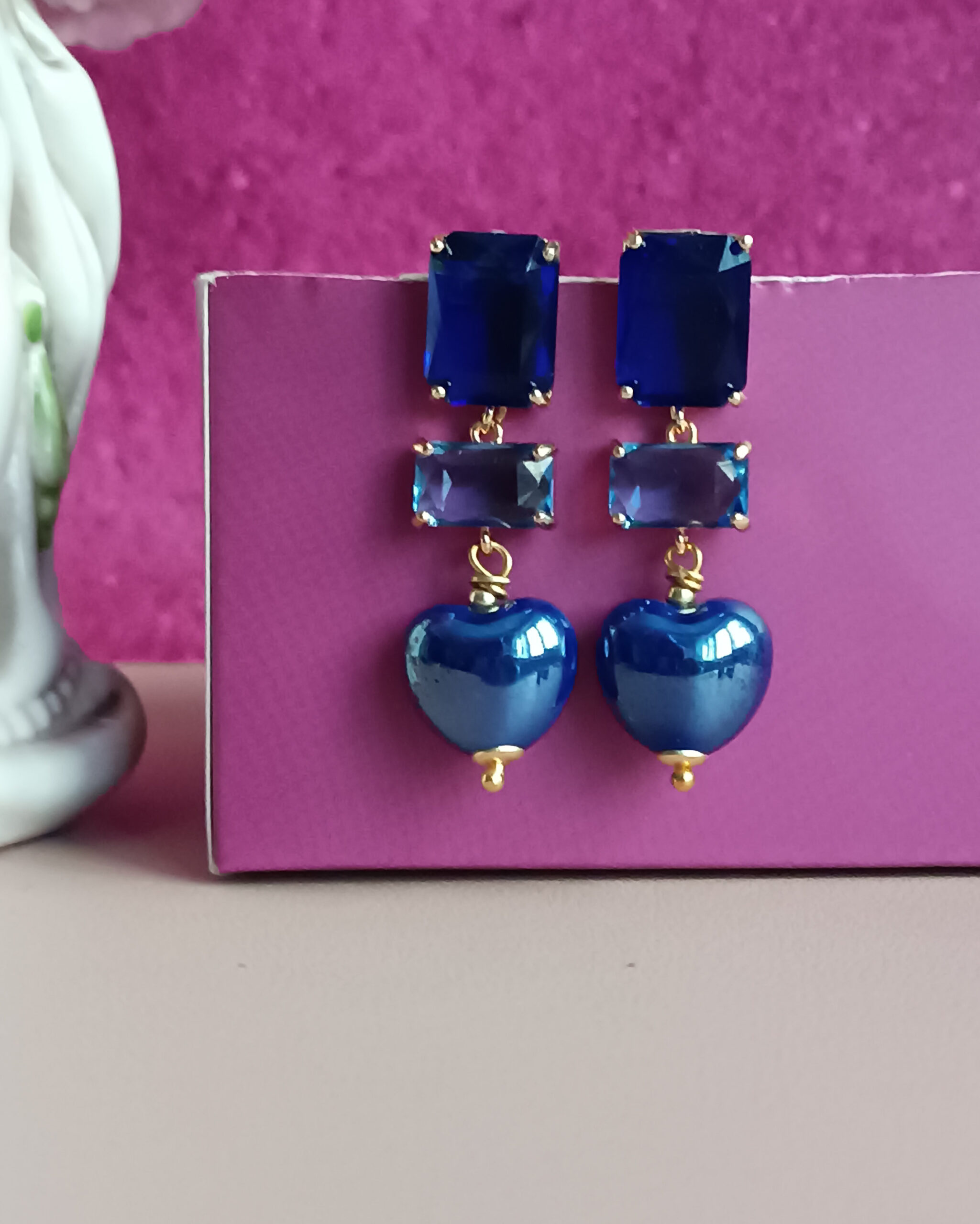 Earrings SUGAR with Ceramic Hearts and Blue Crystals