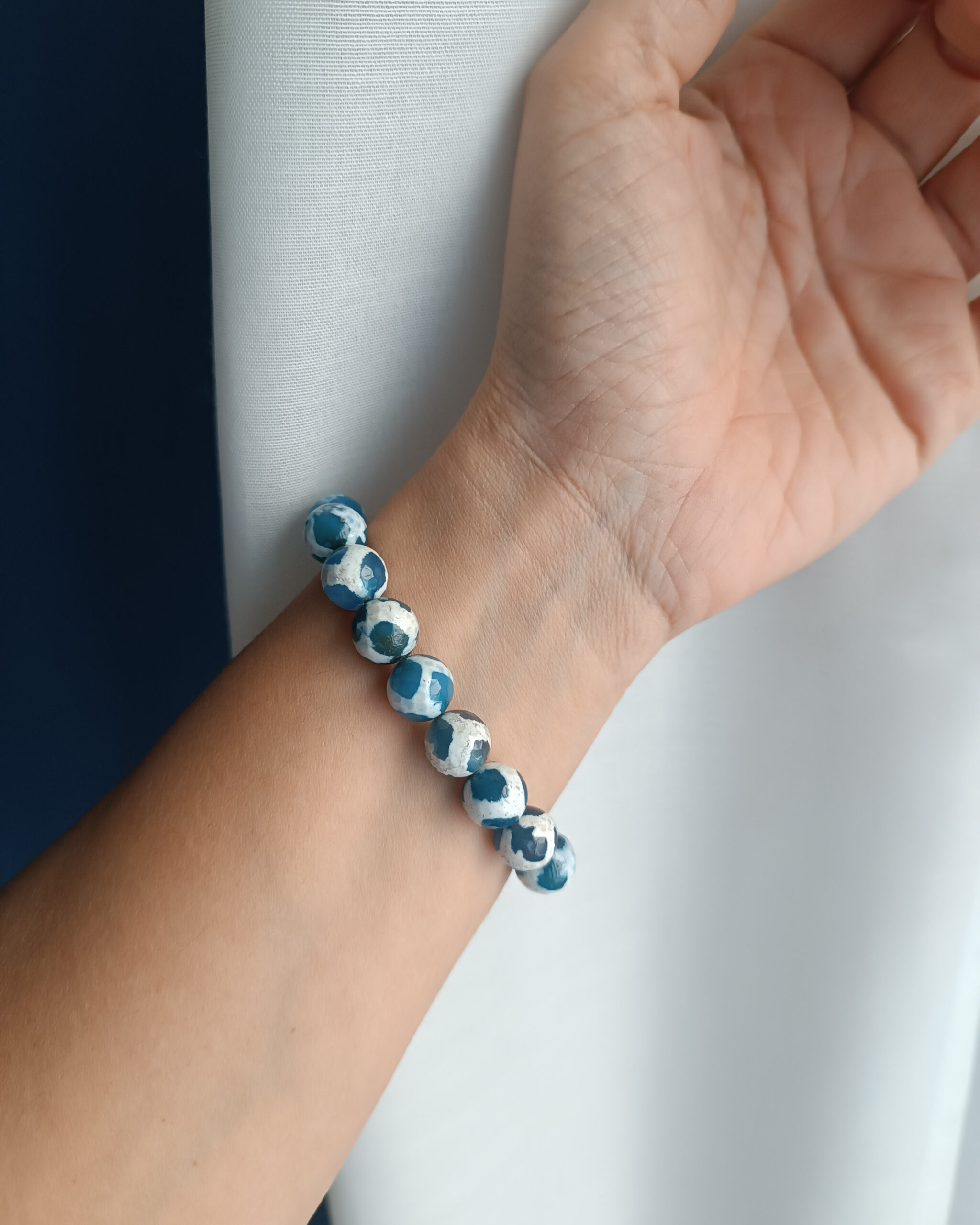 Elastic Bracelet with Tibetan Stones and Big Central Pearl
