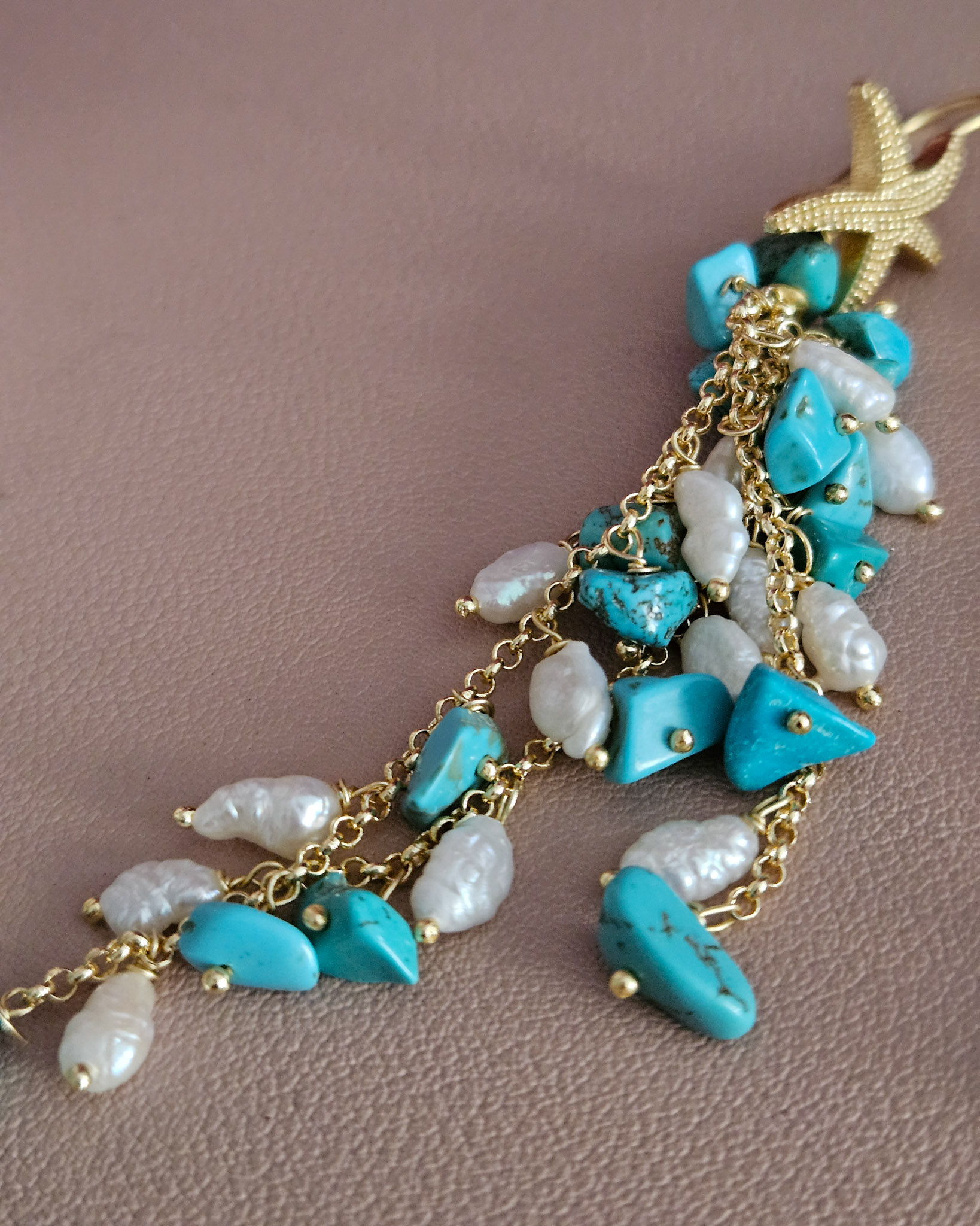 A cascade of Pearls and Turquoise for a pair of earrings that will literally enchant you.