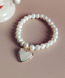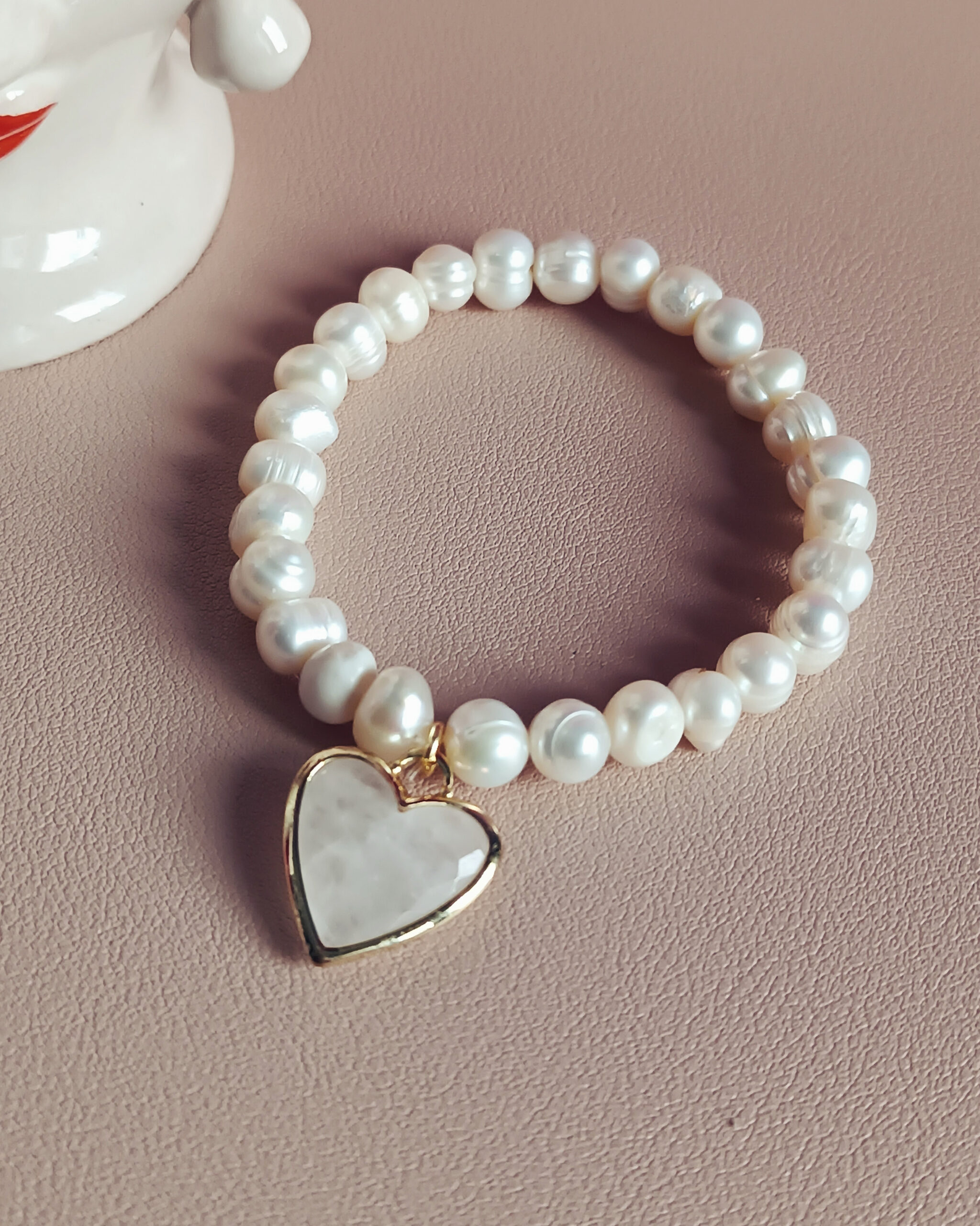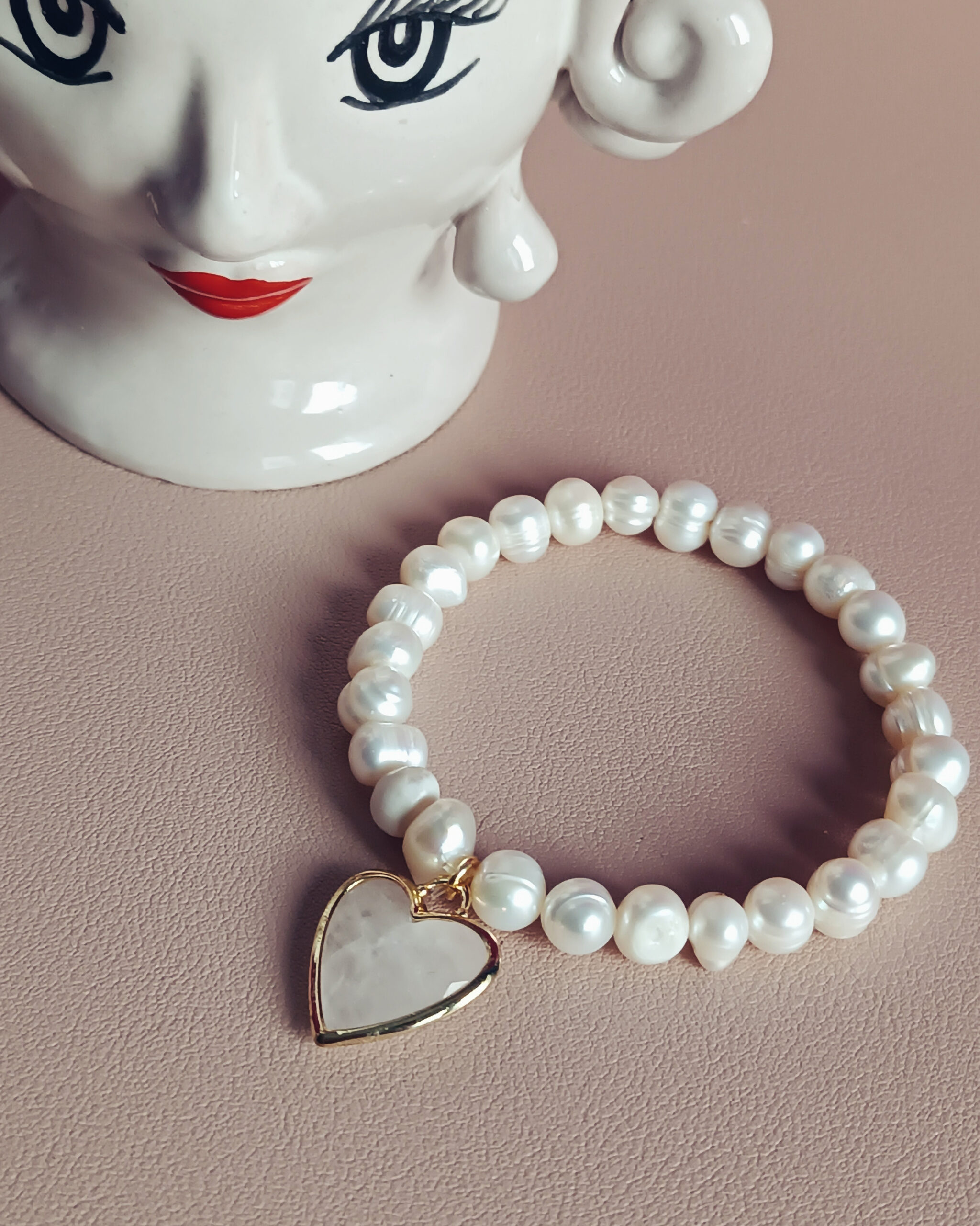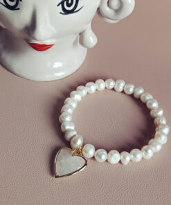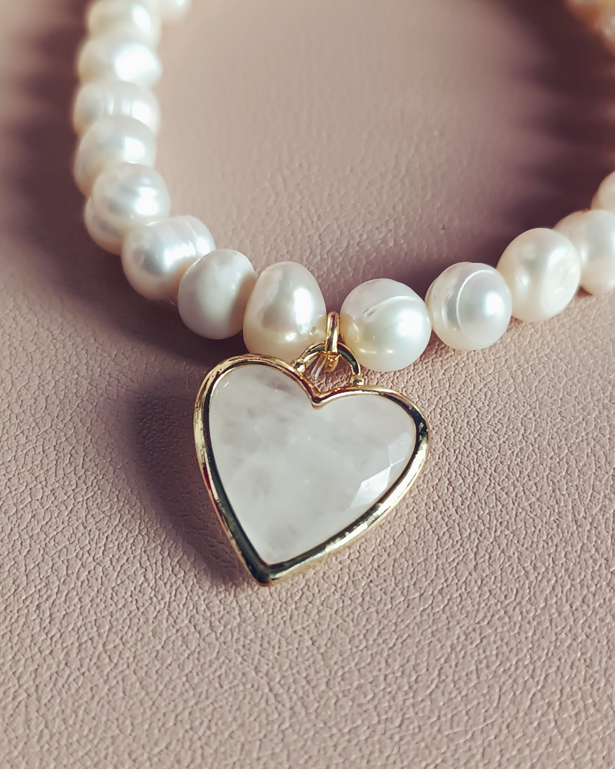 A very refined and simple bracelet made with natural river pearls and a rock crystal pendant heart.
