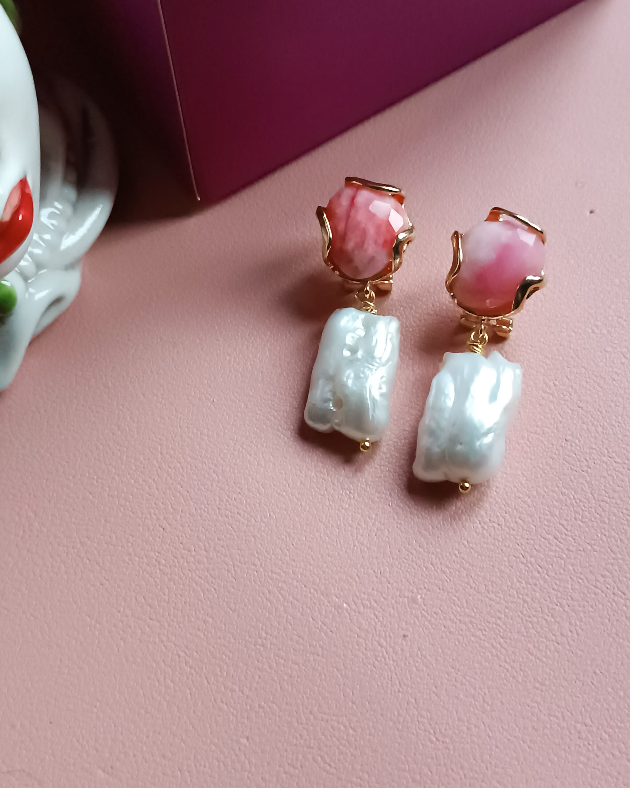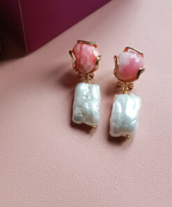 Pearl Earrings with Rose Chrysoberyl Stones