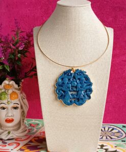 Rigid Choker Necklace with Carved Jade Pendant