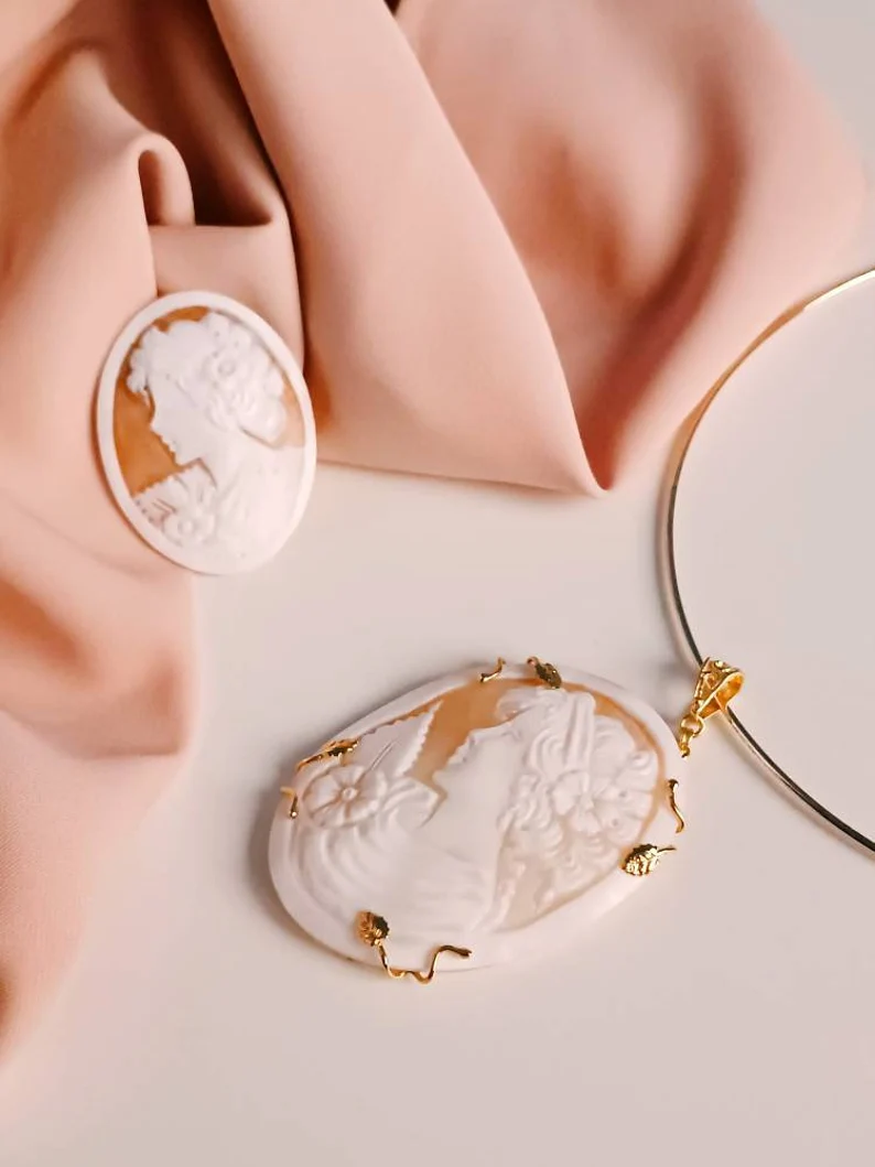 Cameo brooches have been back in fashion for a few years now, a unique piece of jewellery that can embellish even a casual outfit.