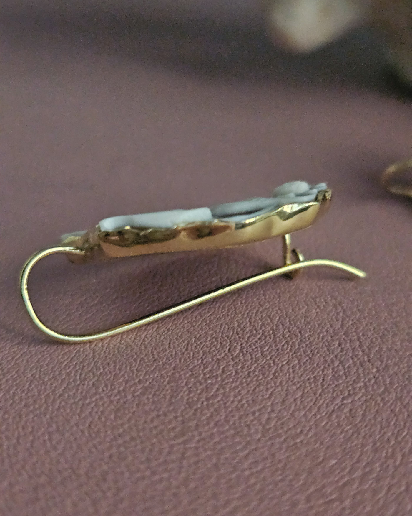 The thin golden border frames the cameo without overwhelming it, adding a touch of elegance that completes its refinement. The result is a jewel that combines art, tradition, and poetry, capable of telling a story of skilled hands and authentic beauty, destined to last over time.