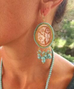 Shell Cameo Earrings with Turquoise Stones