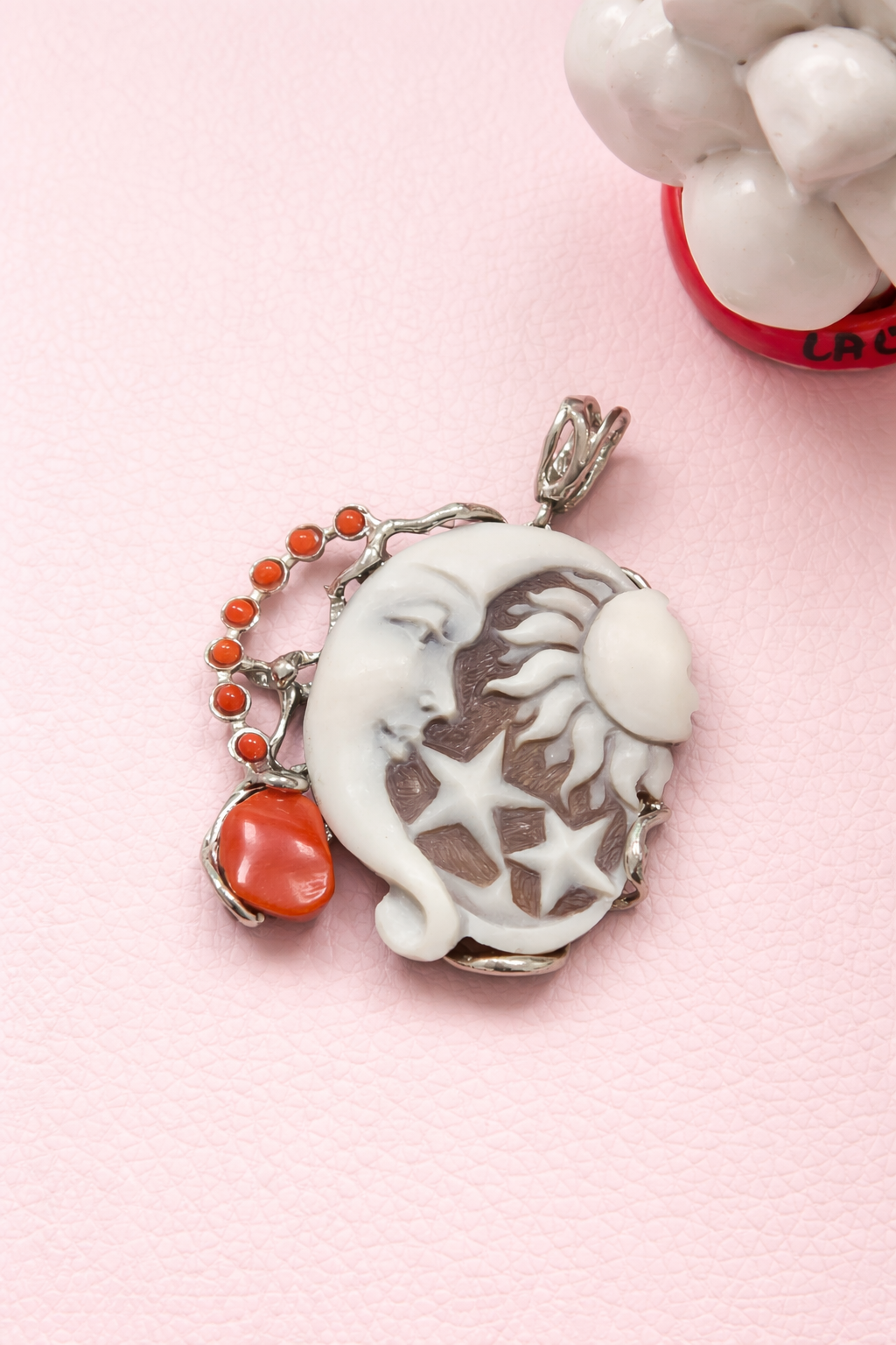 Shell Cameo Pendant and Red Coral