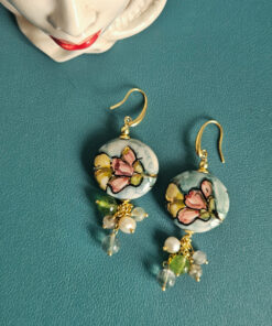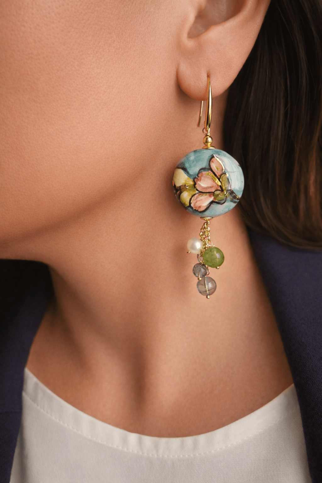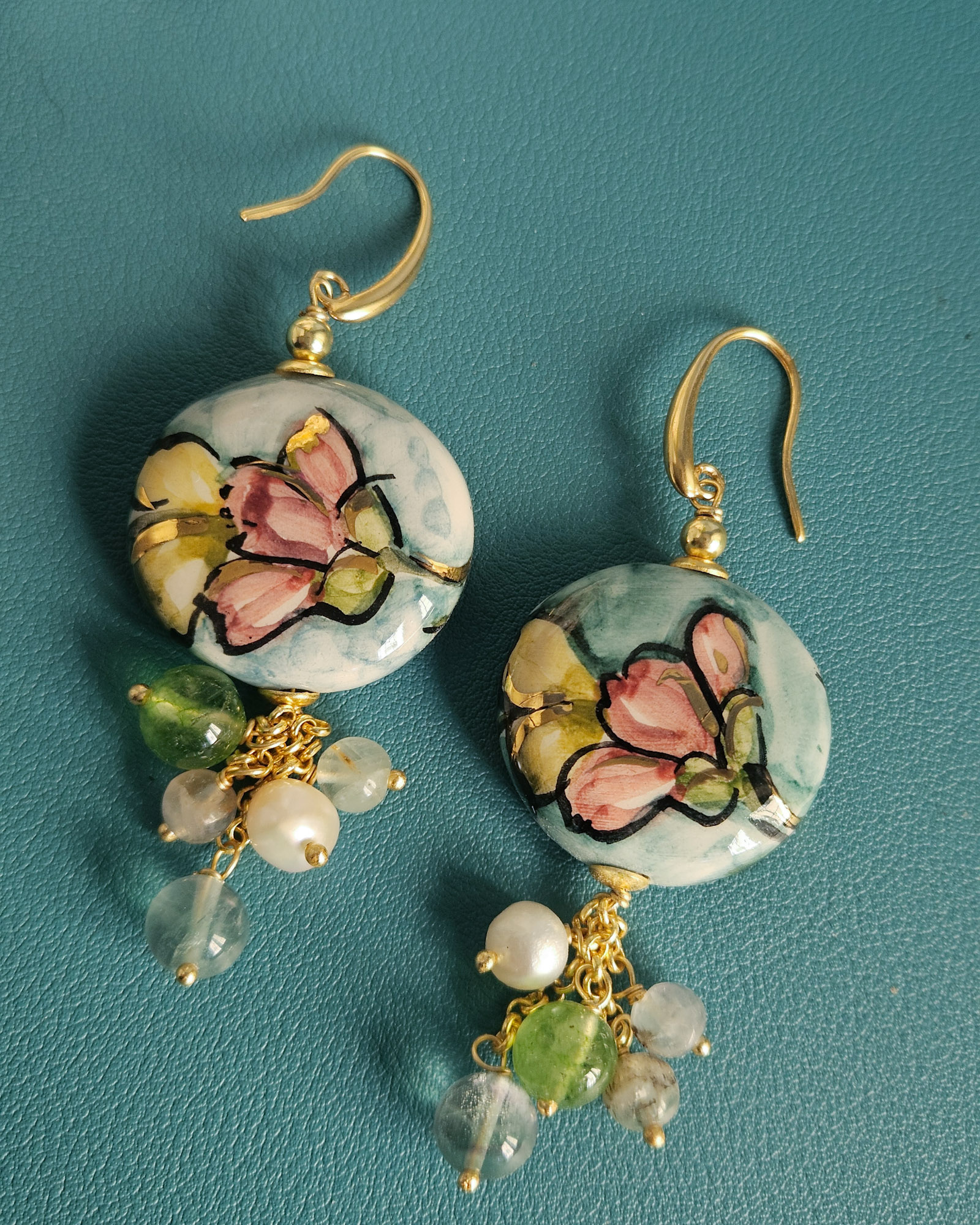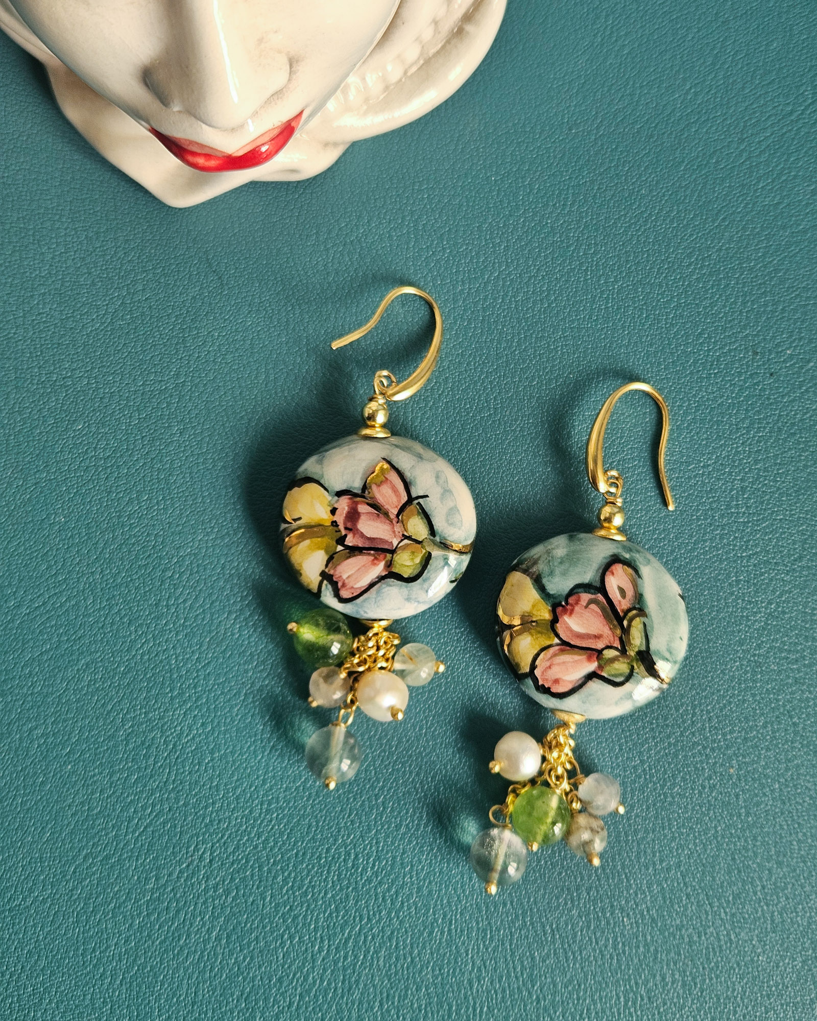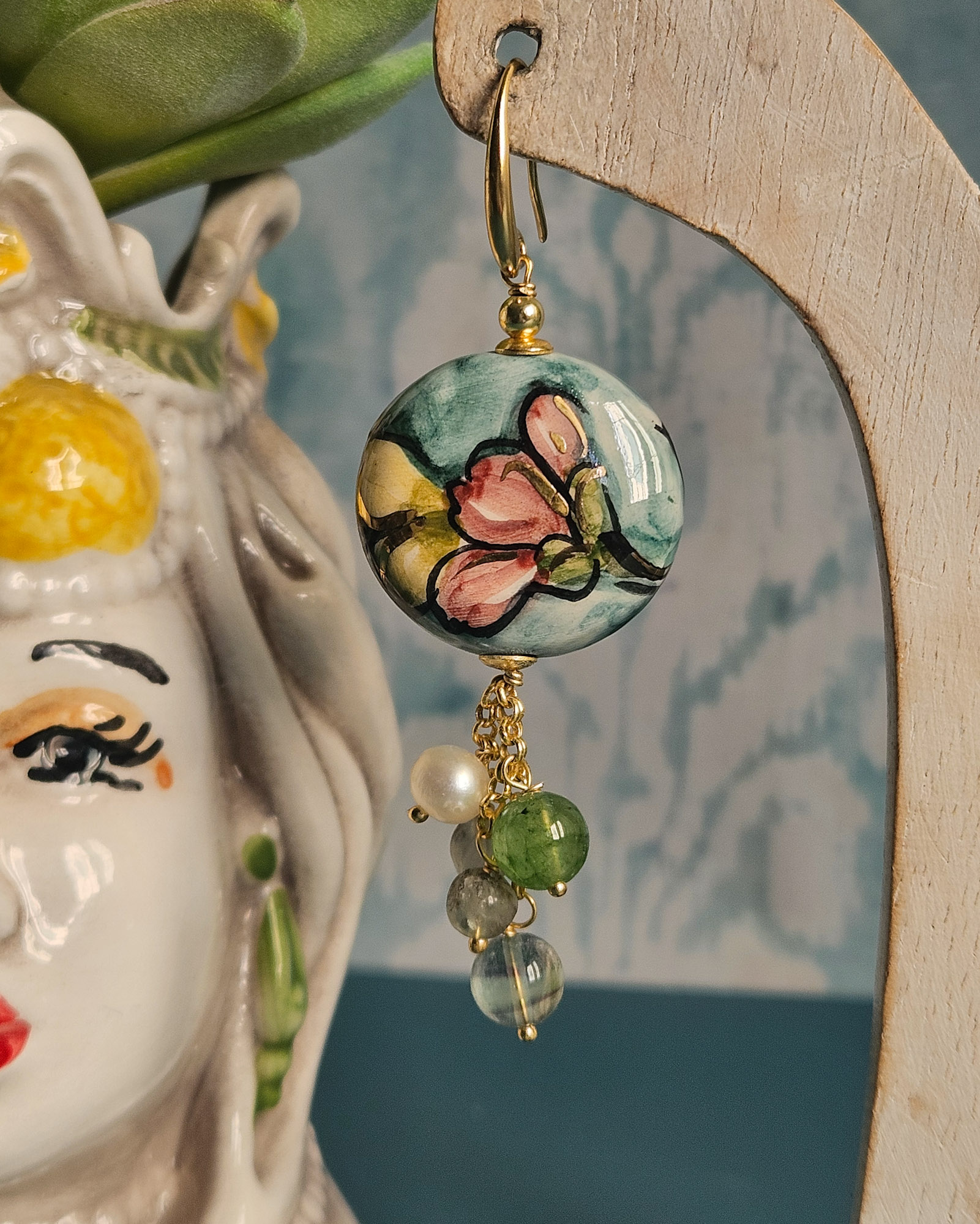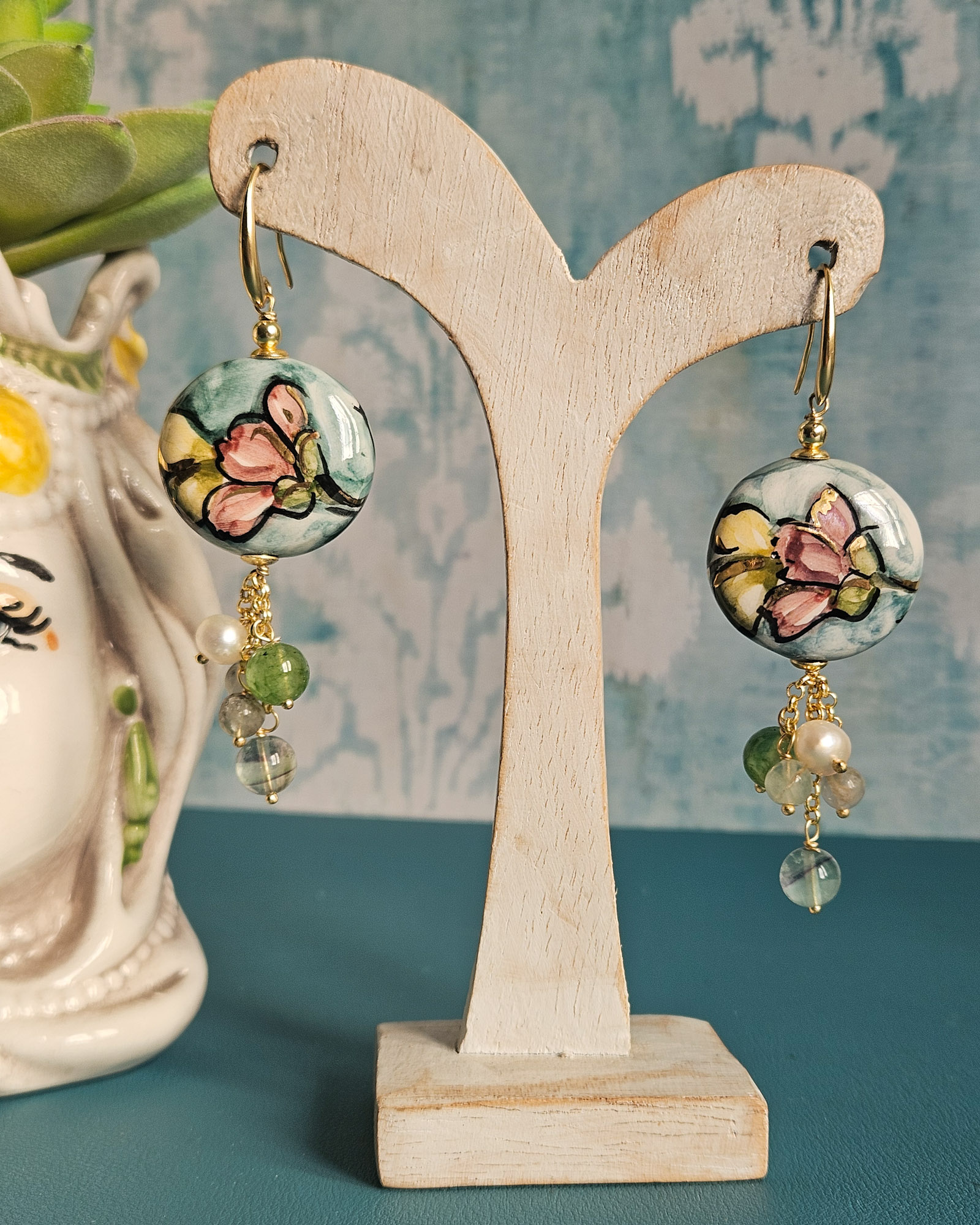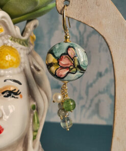 Sicilian Earrings with Round Ceramics and Natural Stones