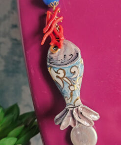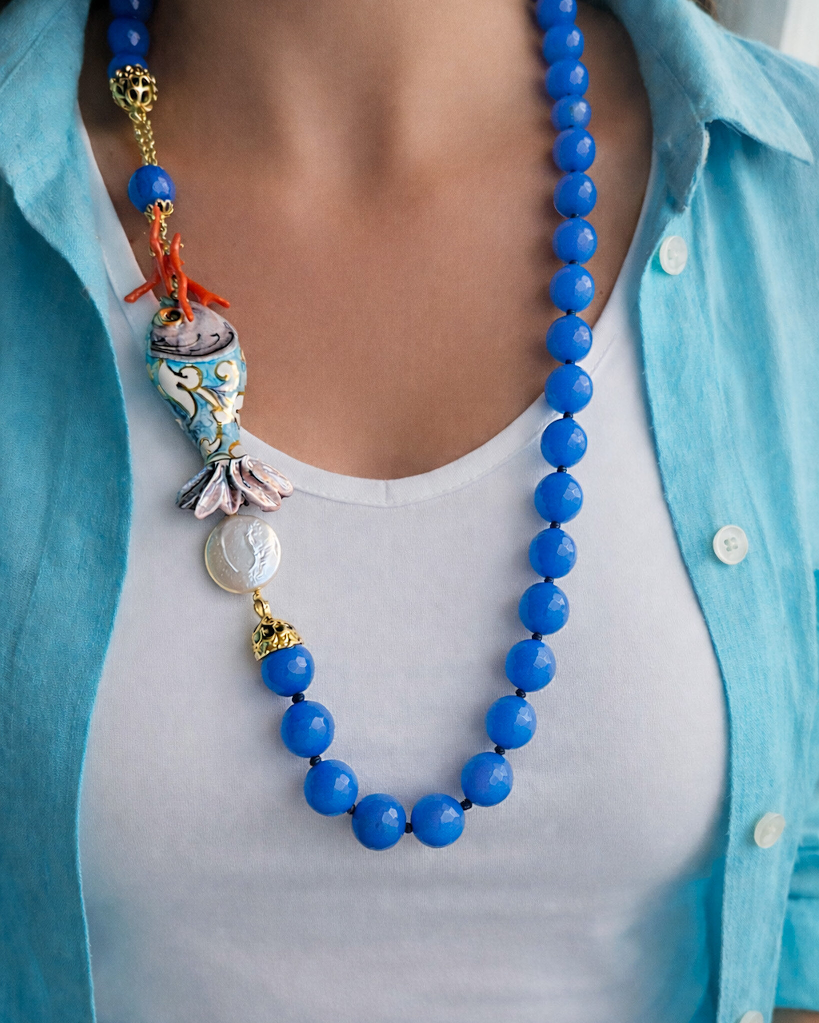 Sicilian Necklace with Blue Stones and Sicilian Ceramic Fish