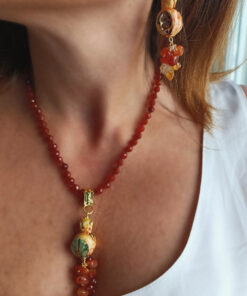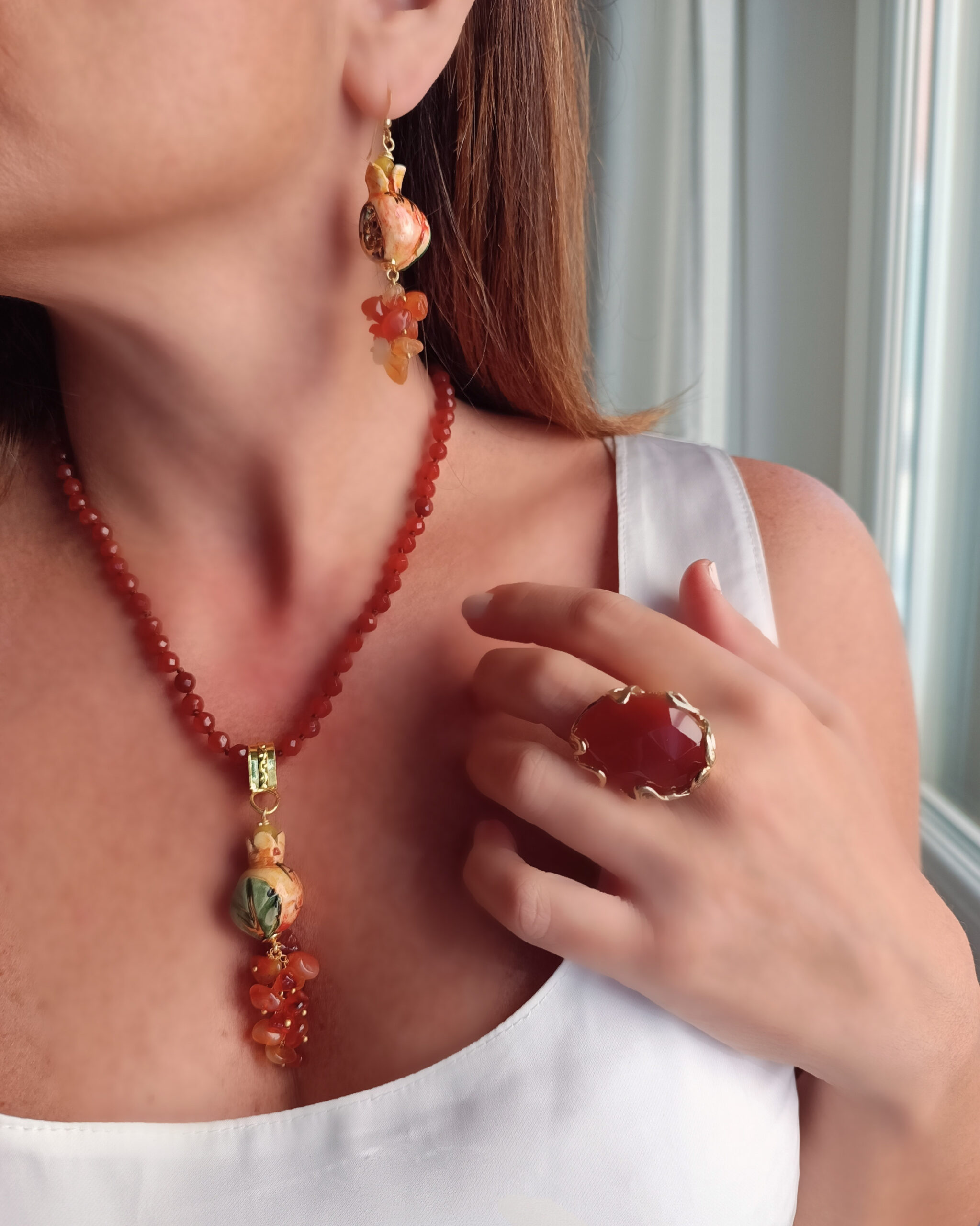 Sicilian Necklace with Carnelian and Sicily Ceramic Pomegranate