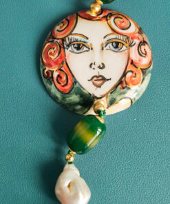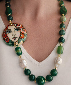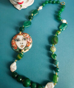 Sicilian Necklace with Green Stones and Sicily Ceramic Medal