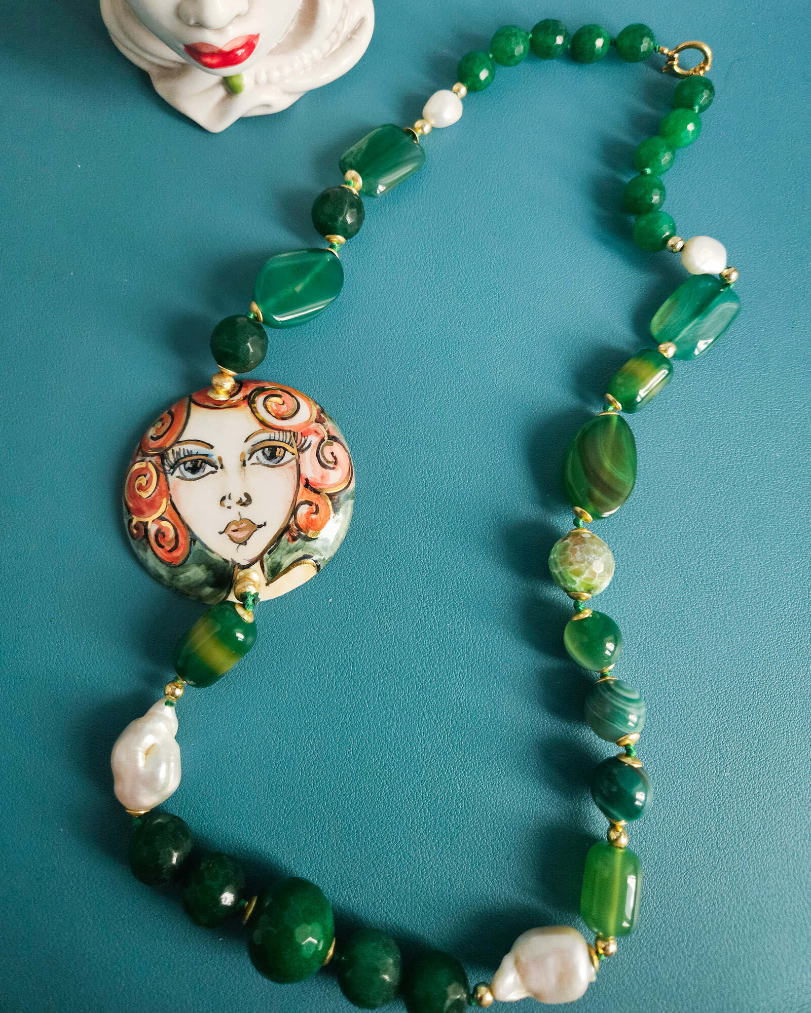 At the center, a hand-painted face makes the necklace unique and one-of-a-kind, just like the person wearing it.