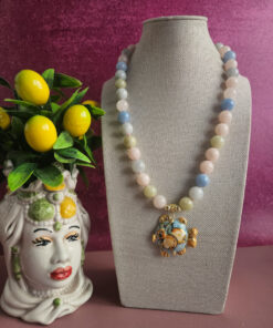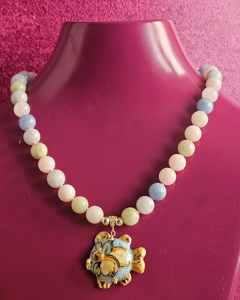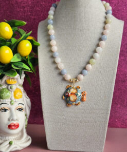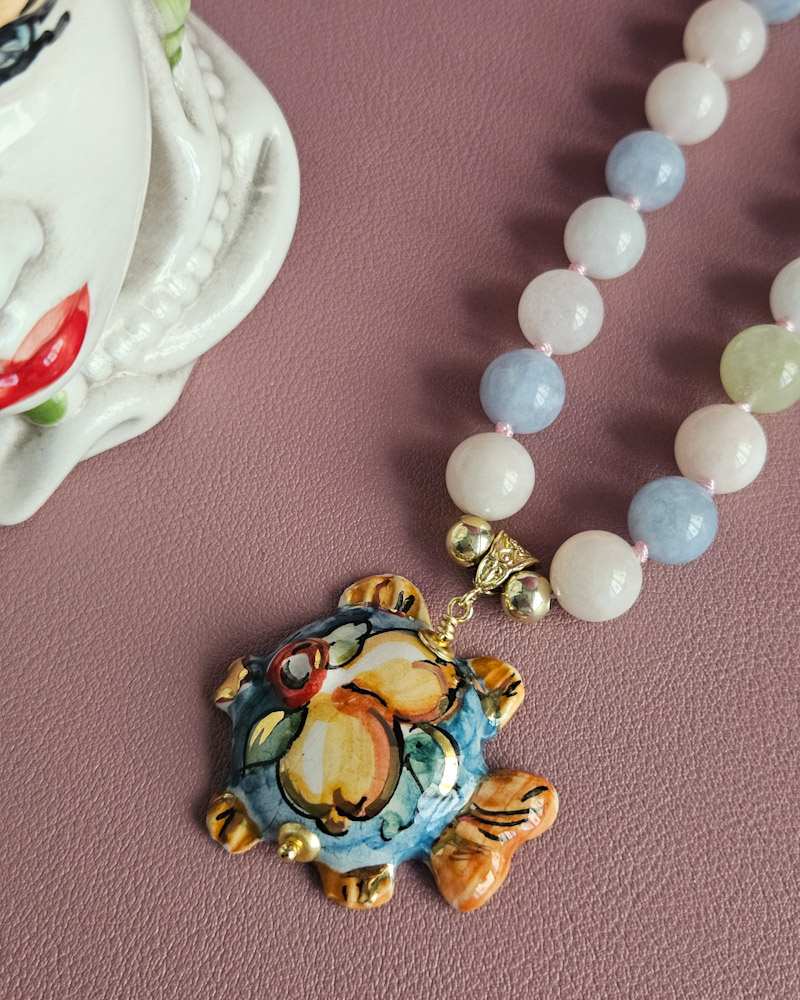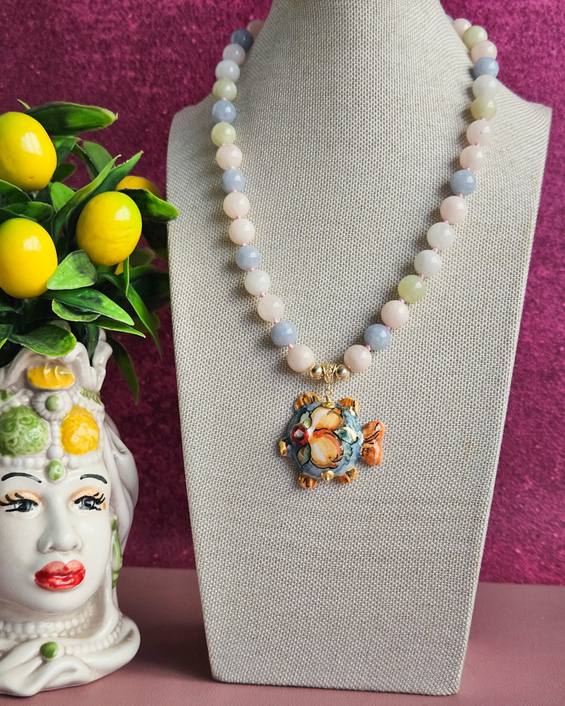 Sicilian Necklace with Morganite Stones and Ceramic Starfish Fish