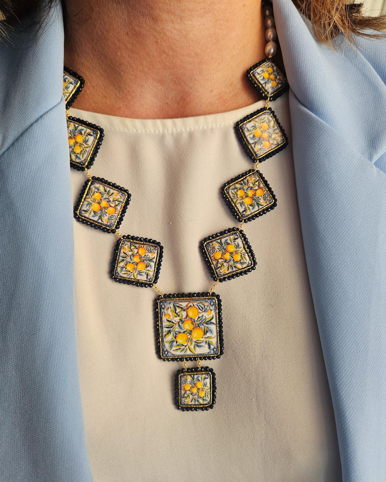 The moment you look at this necklace, you feel transported to Sicily, where the art of ceramics is a true cultural treasure, passed down through generations. This is a creation that goes beyond a simple accessory, it’s a small tale of tradition and craftsmanship.
