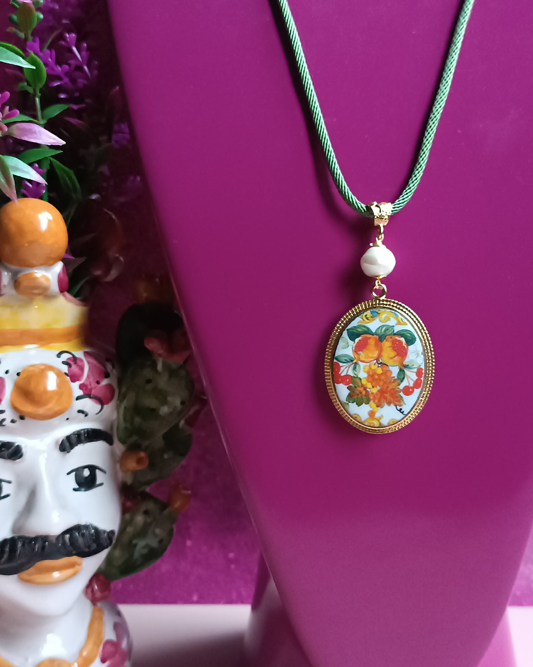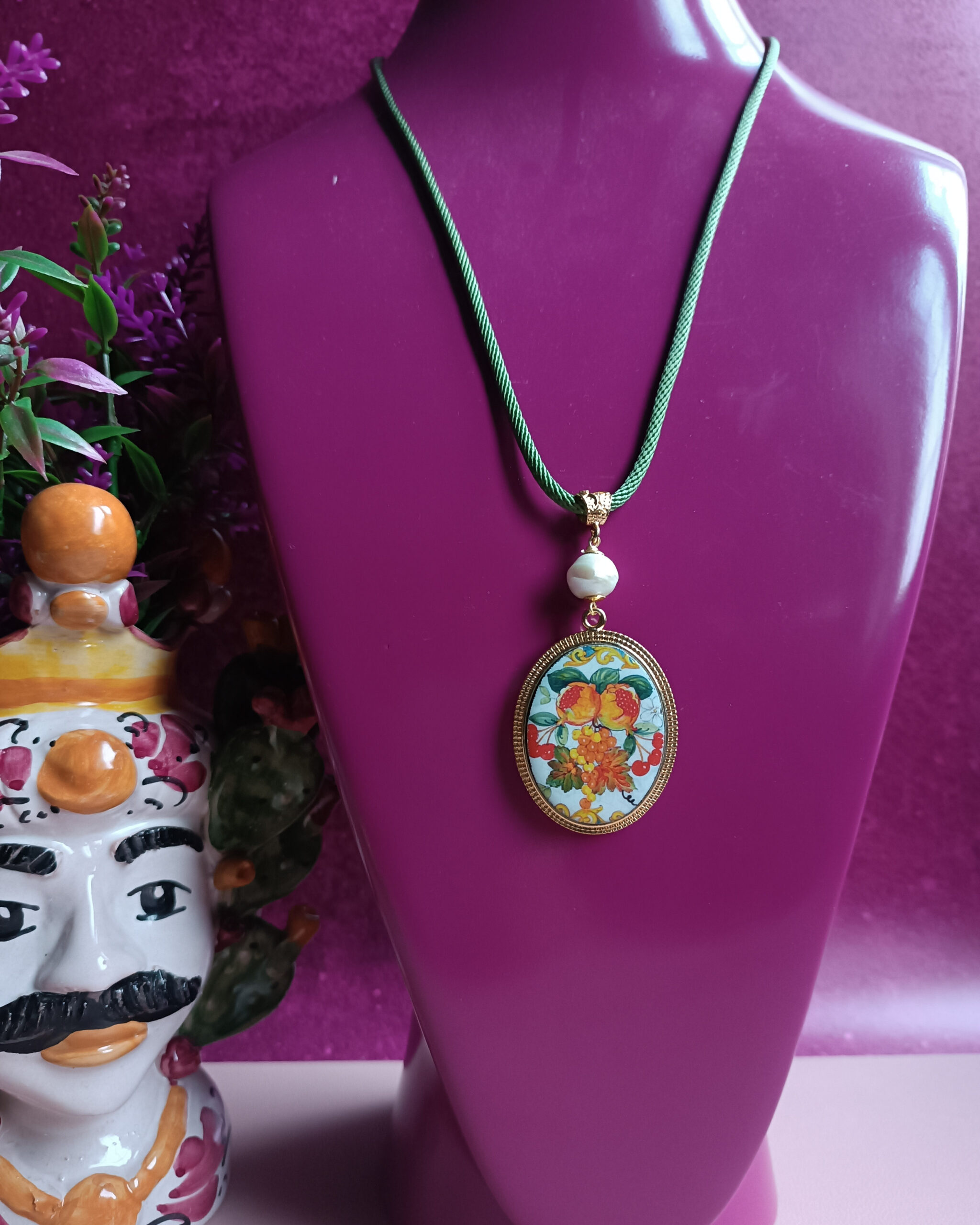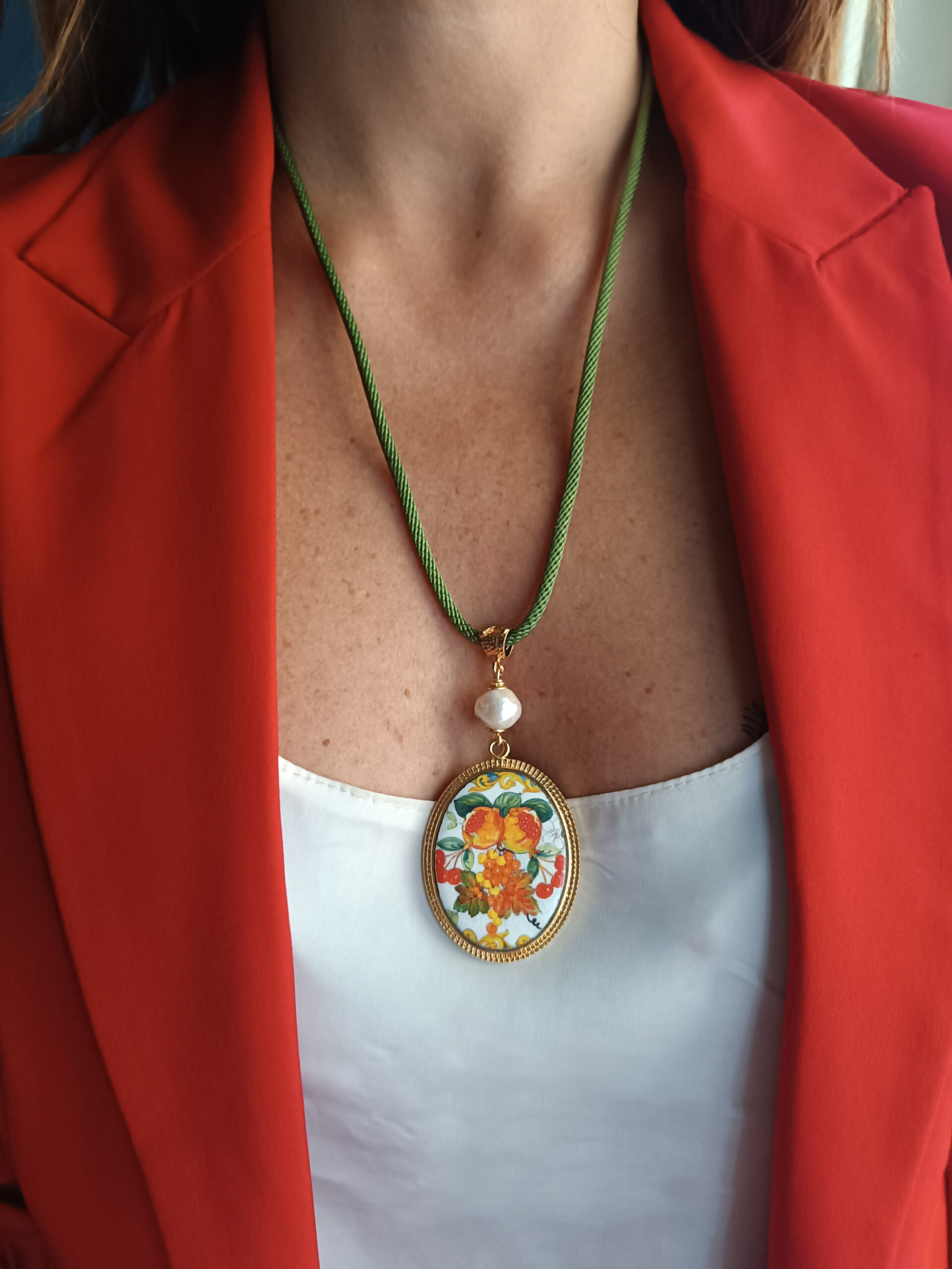 Sicilian Necklace with Pearl and Sicily Ceramic Tile