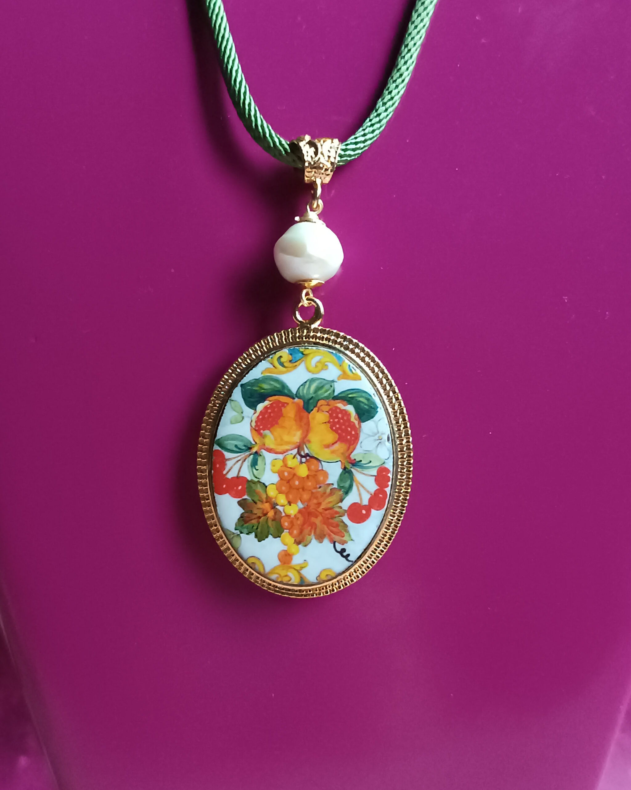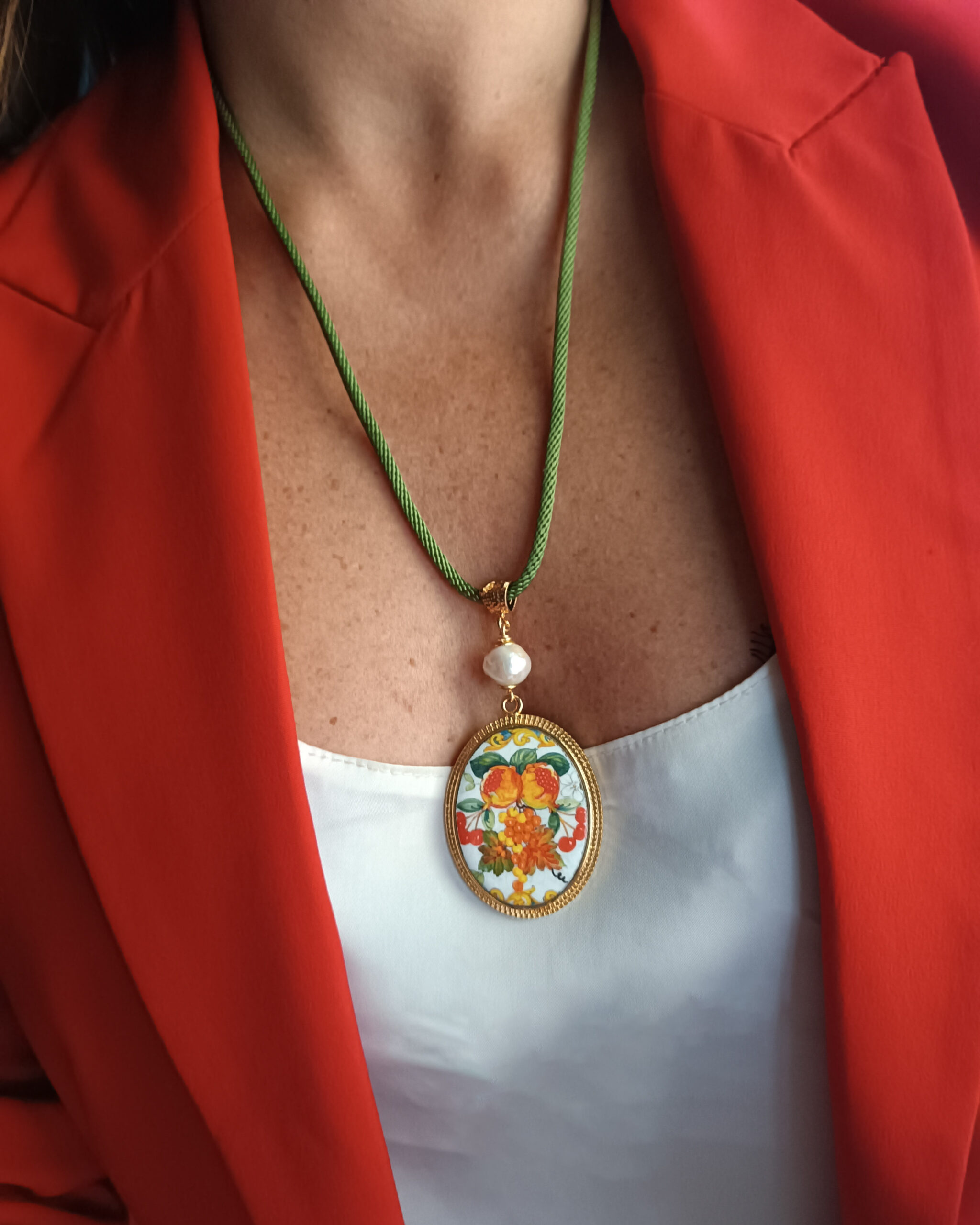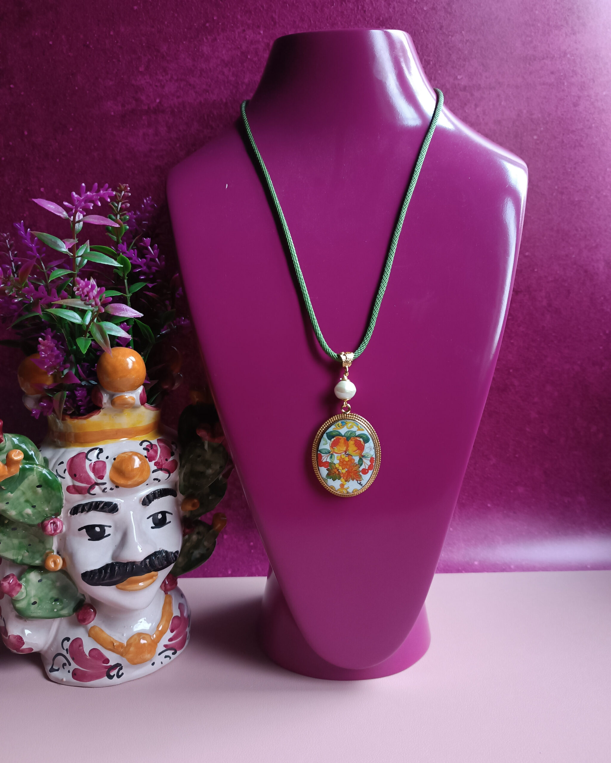 Sicilian Necklace with Pearl and Sicily Ceramic Tile