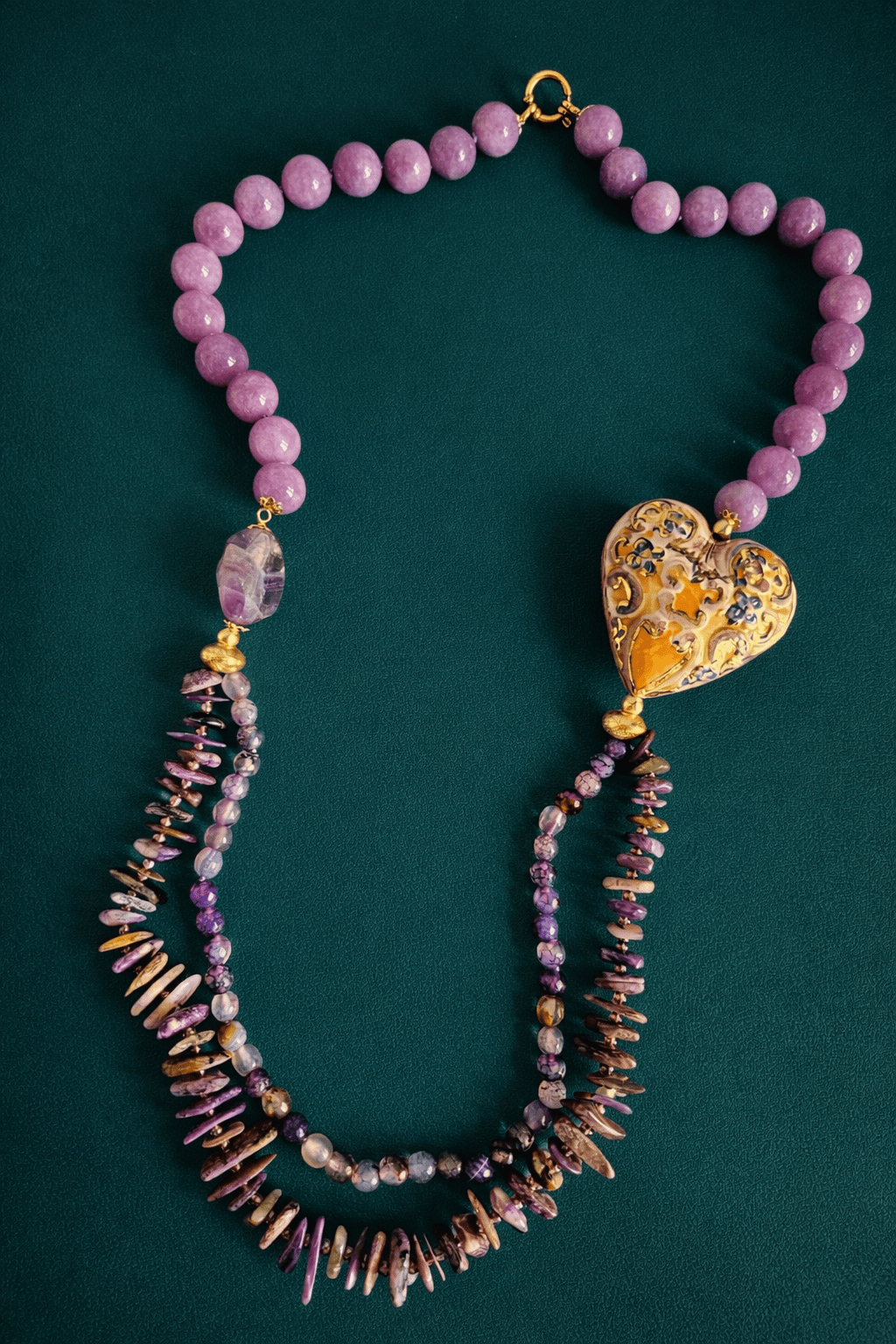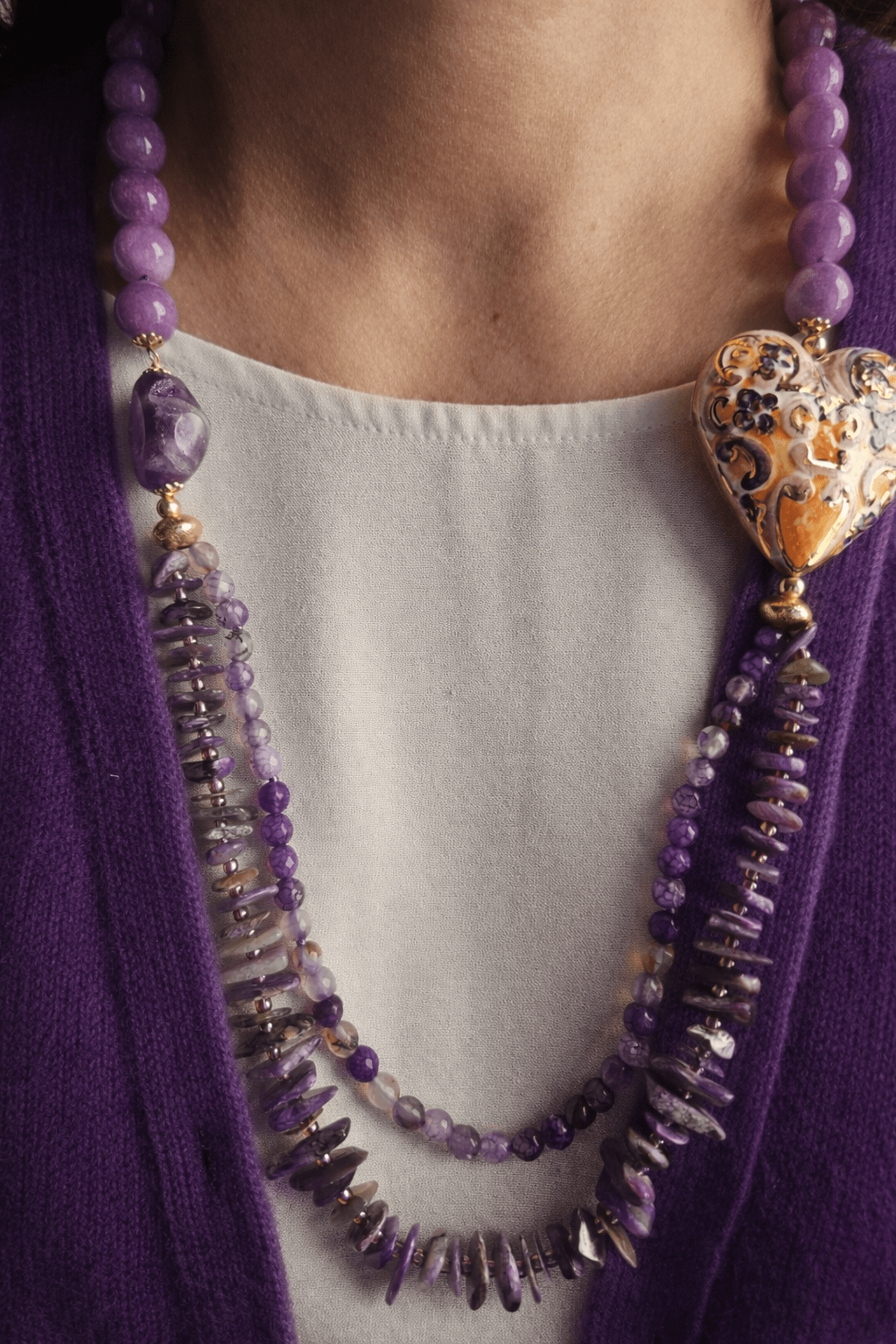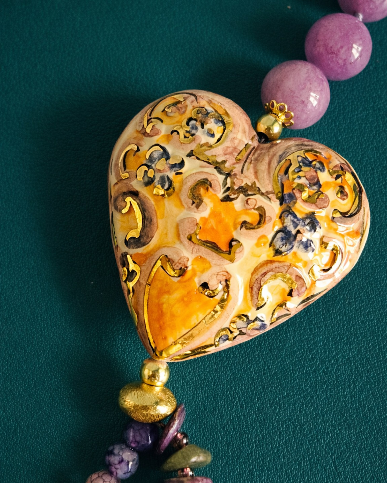 Sicilian Necklace with Purple Stones and Sicily Ceramic Heart