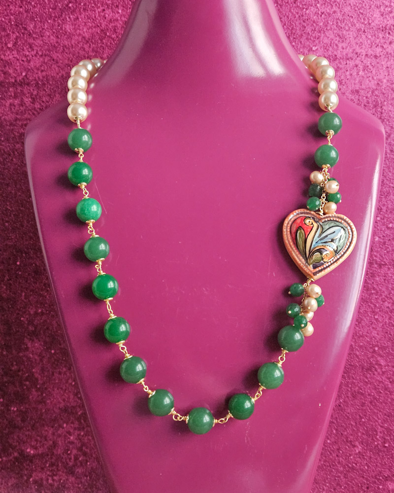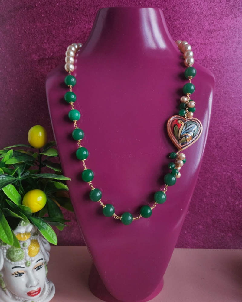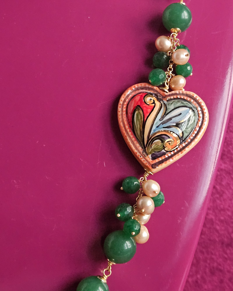 An all-Sicilian style for this wonderful necklace made with stones and Caltagirone ceramic heart.