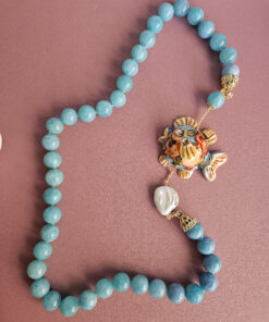 Sicilian Necklace with Turquoise Paste Stones and Sicily Ceramic Fish