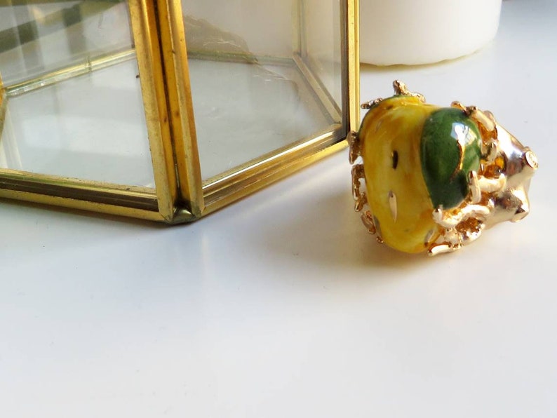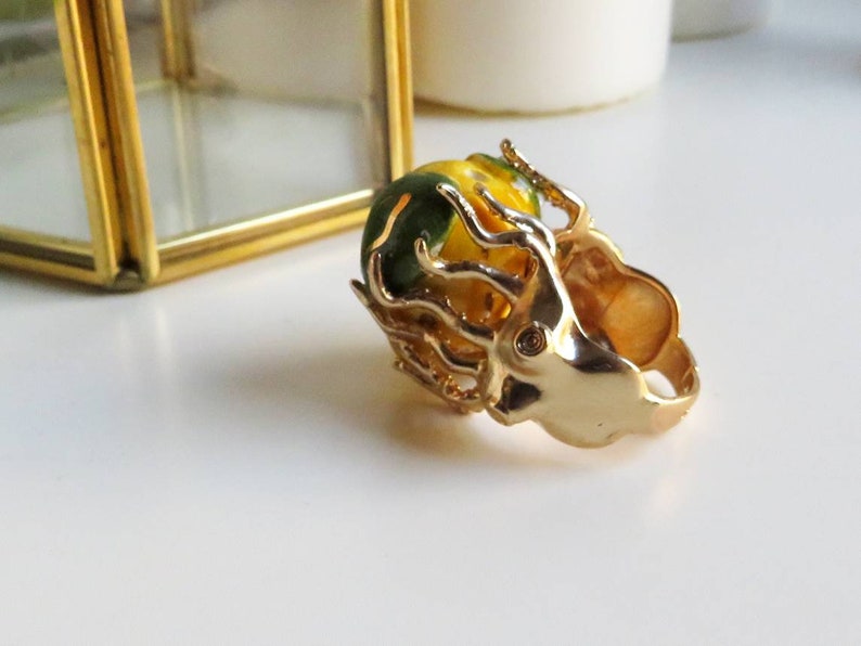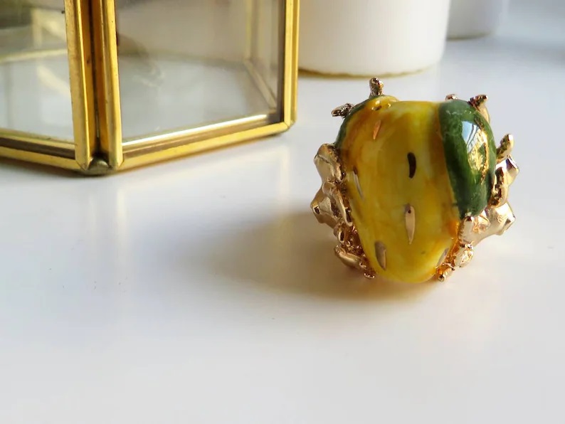 Chunky ring made of Handpainted Sicily ceramic Lemon (20 mm x 15 mm).