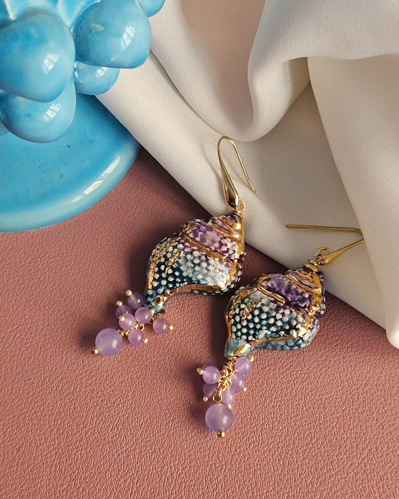 Sicily Ceramic Shell Earrings with Liliac Stones