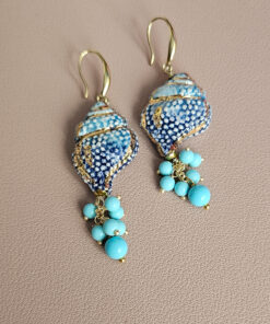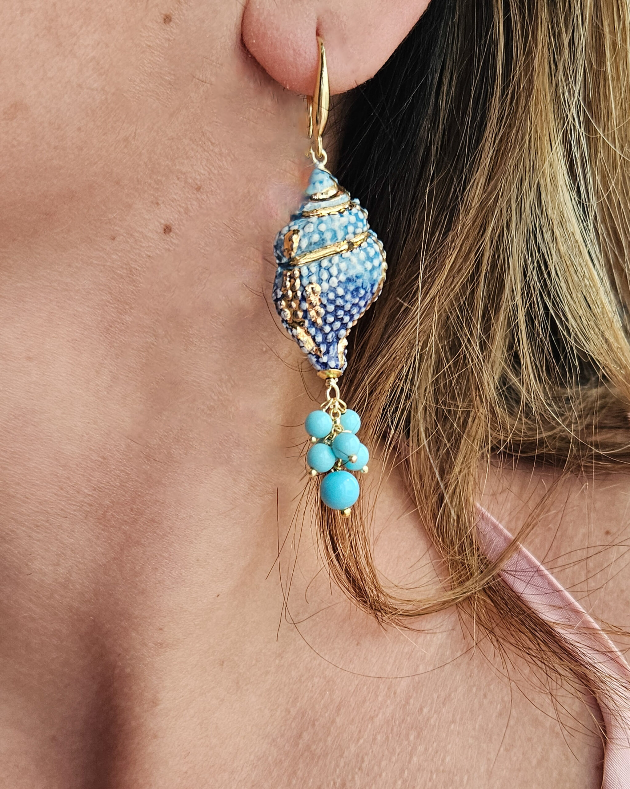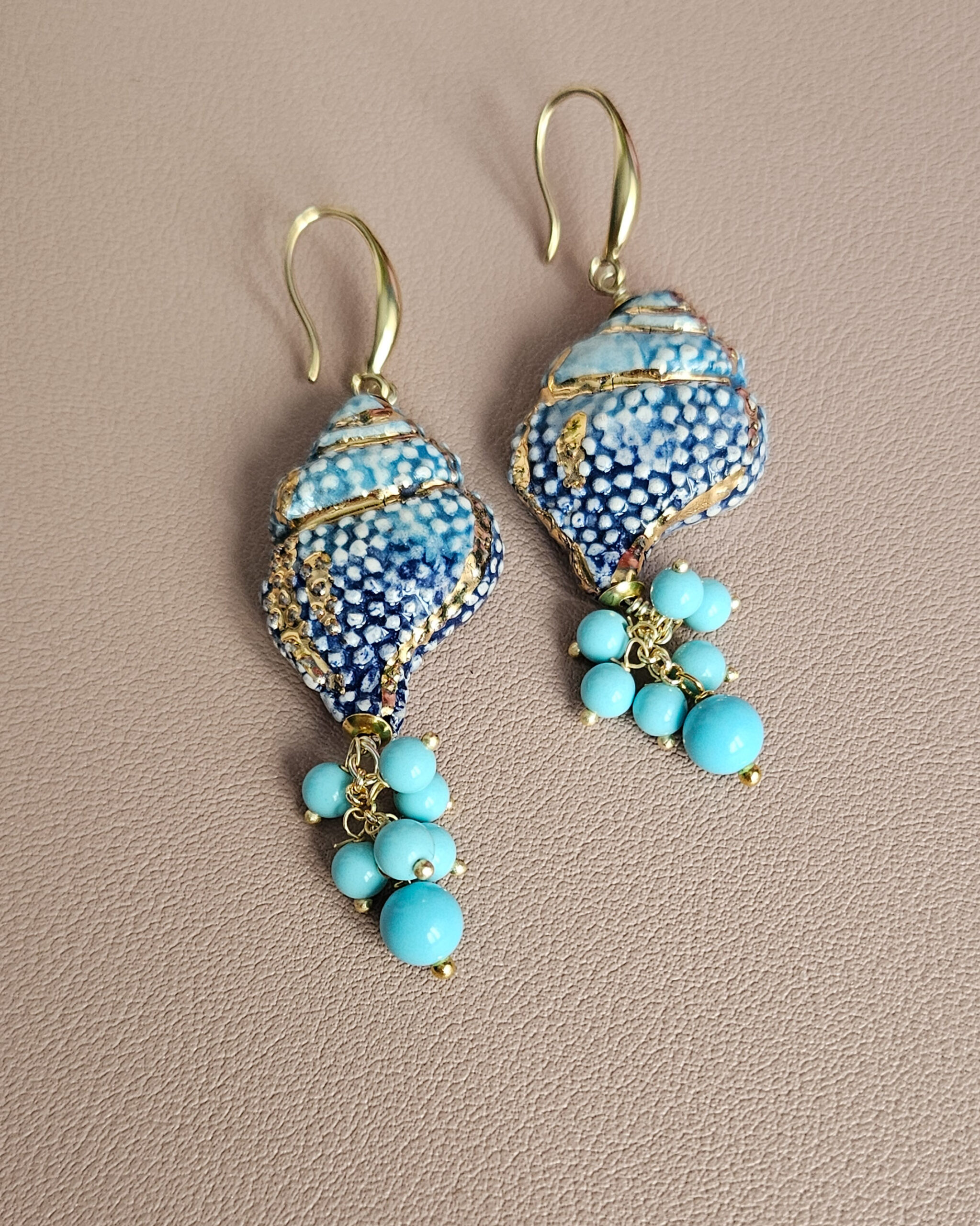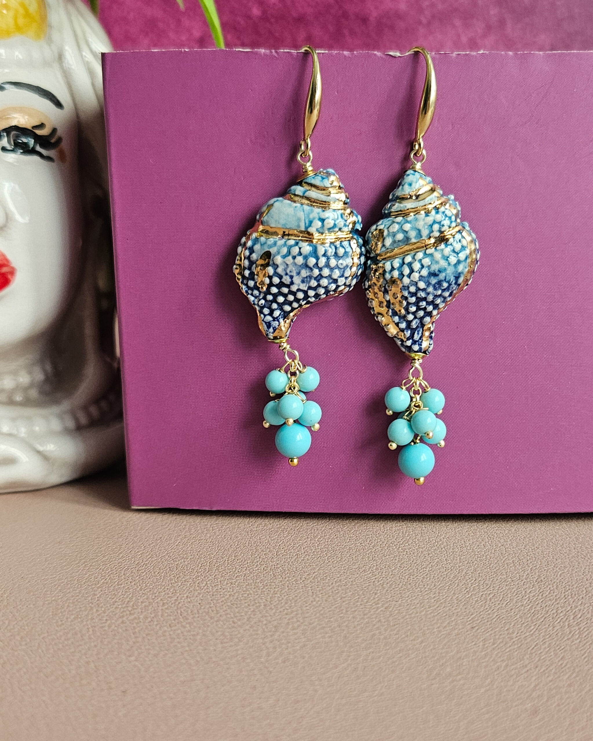 Sicily Ceramic Shell Earrings with Turquoise Stones