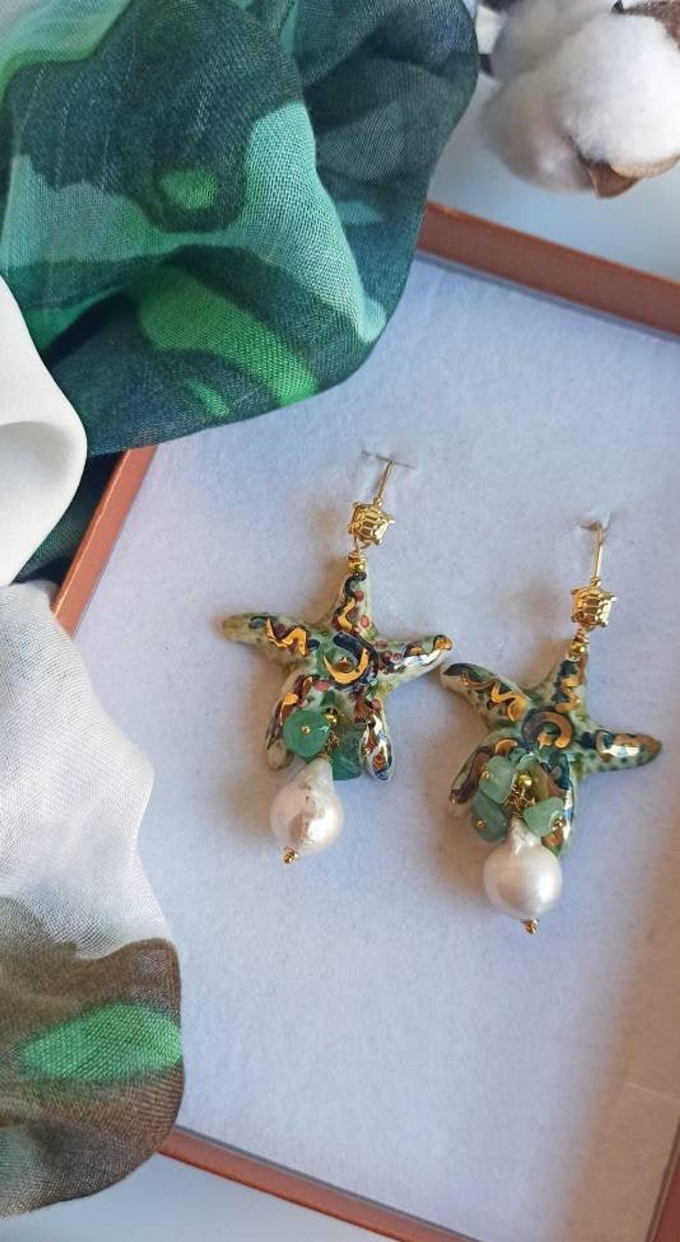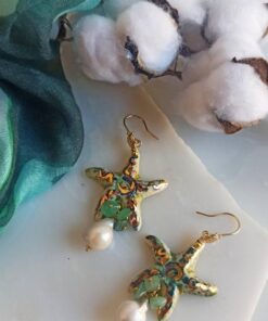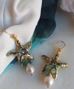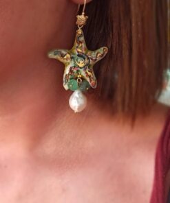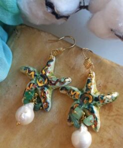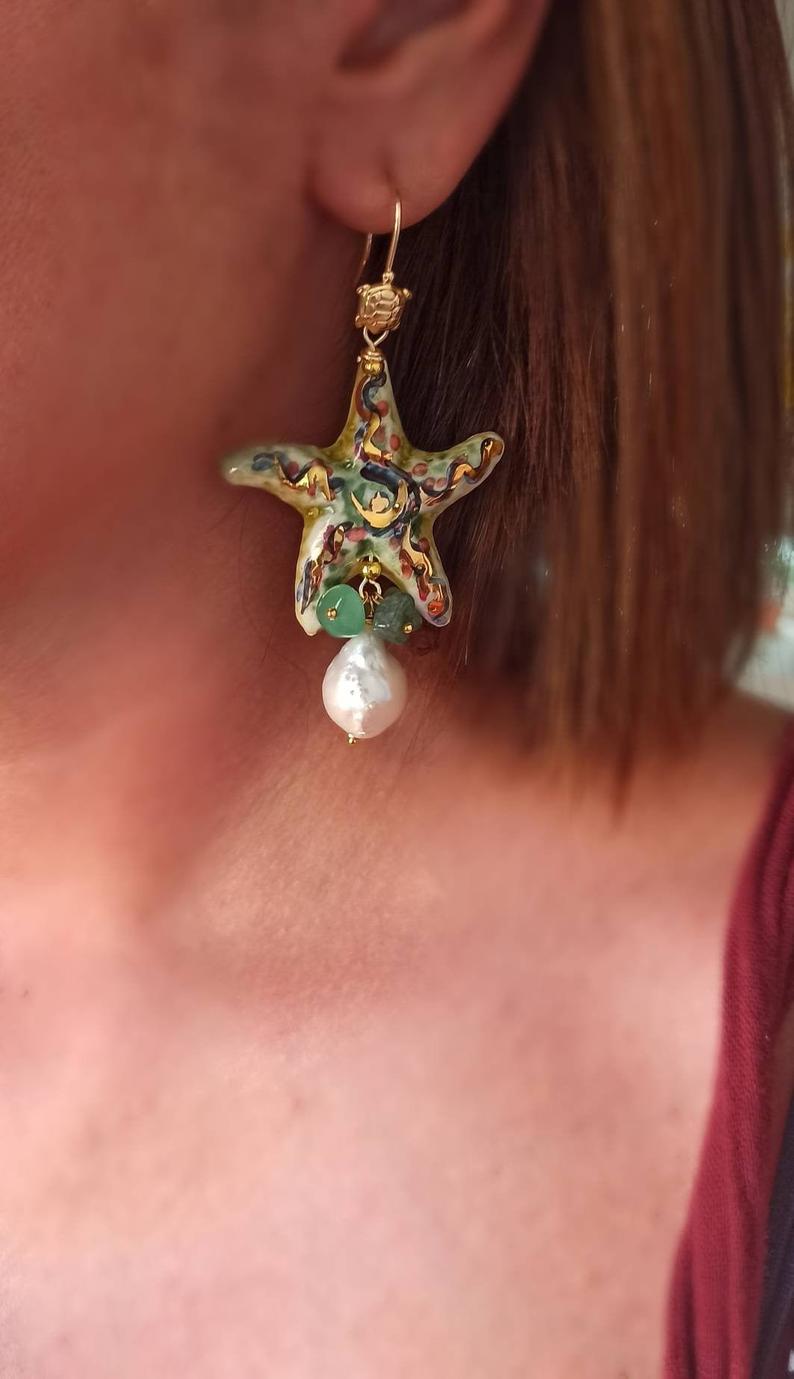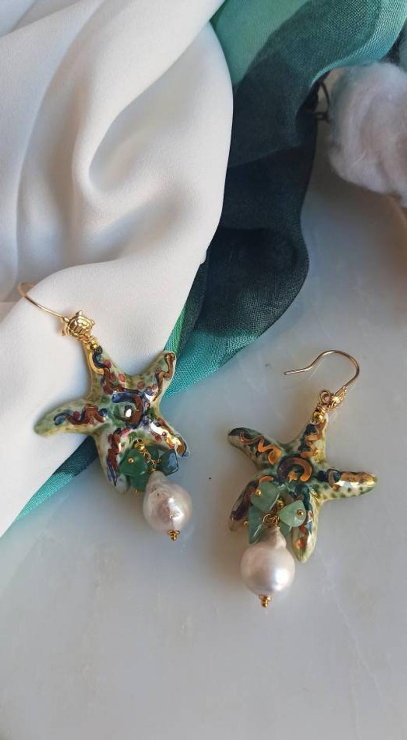 Sicily Ceramic Starfish Earrings with Baroque Pearl Drops