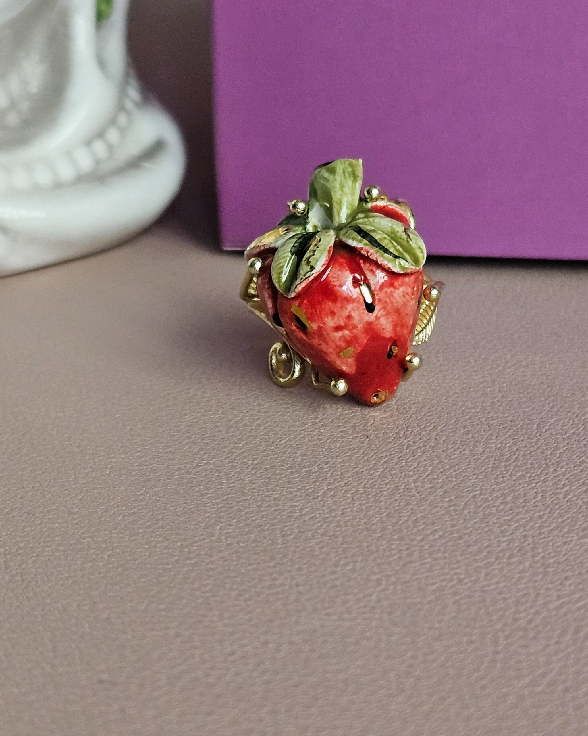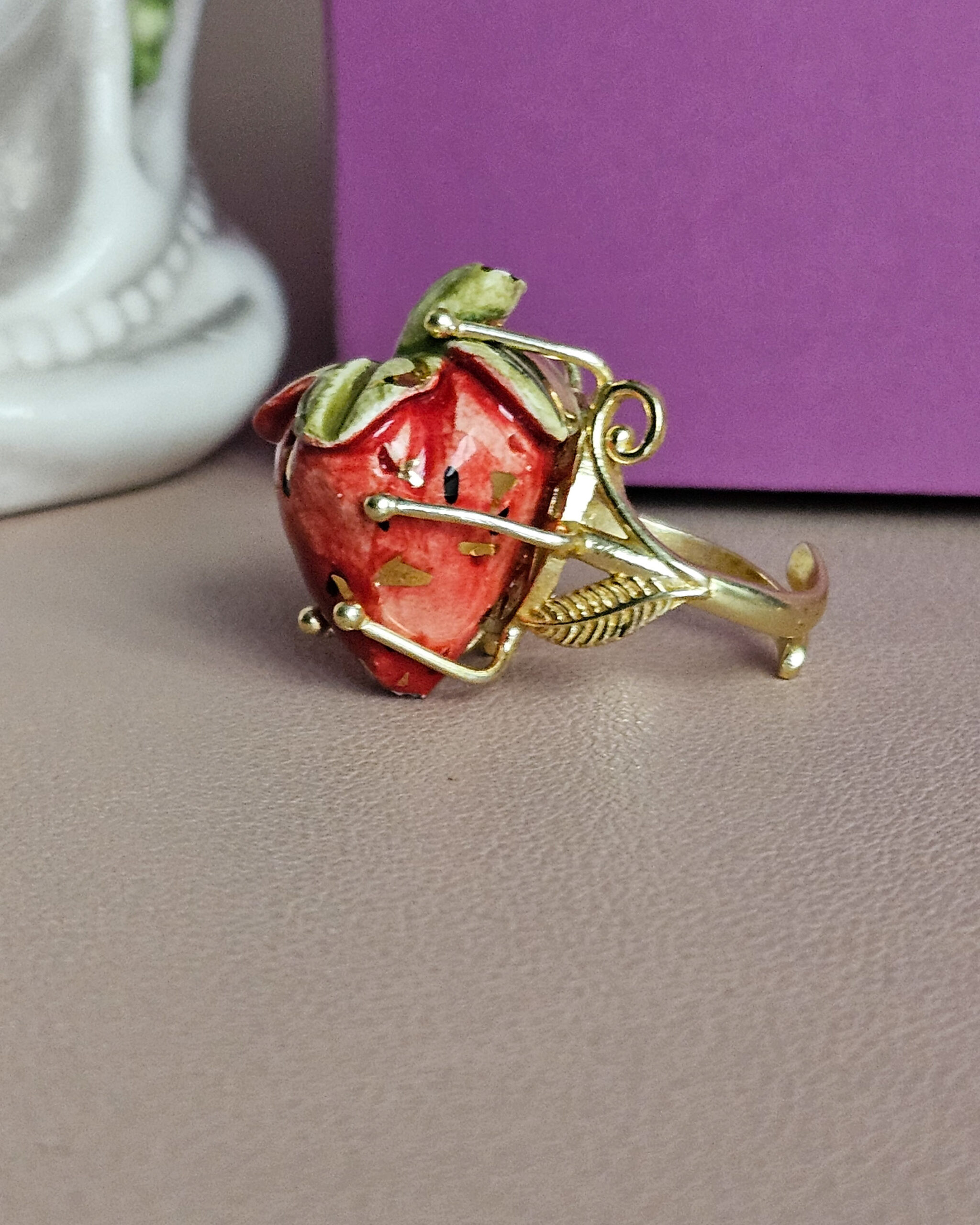 A wonderful strawberry on your finger that will adorn your hands with originaity and great style.