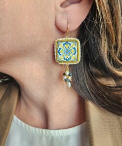 Sicilian majolica tiles, with their intricate geometric and floral patterns, are at the heart of these earrings, which combine culture and design in a unique and refined accessory.