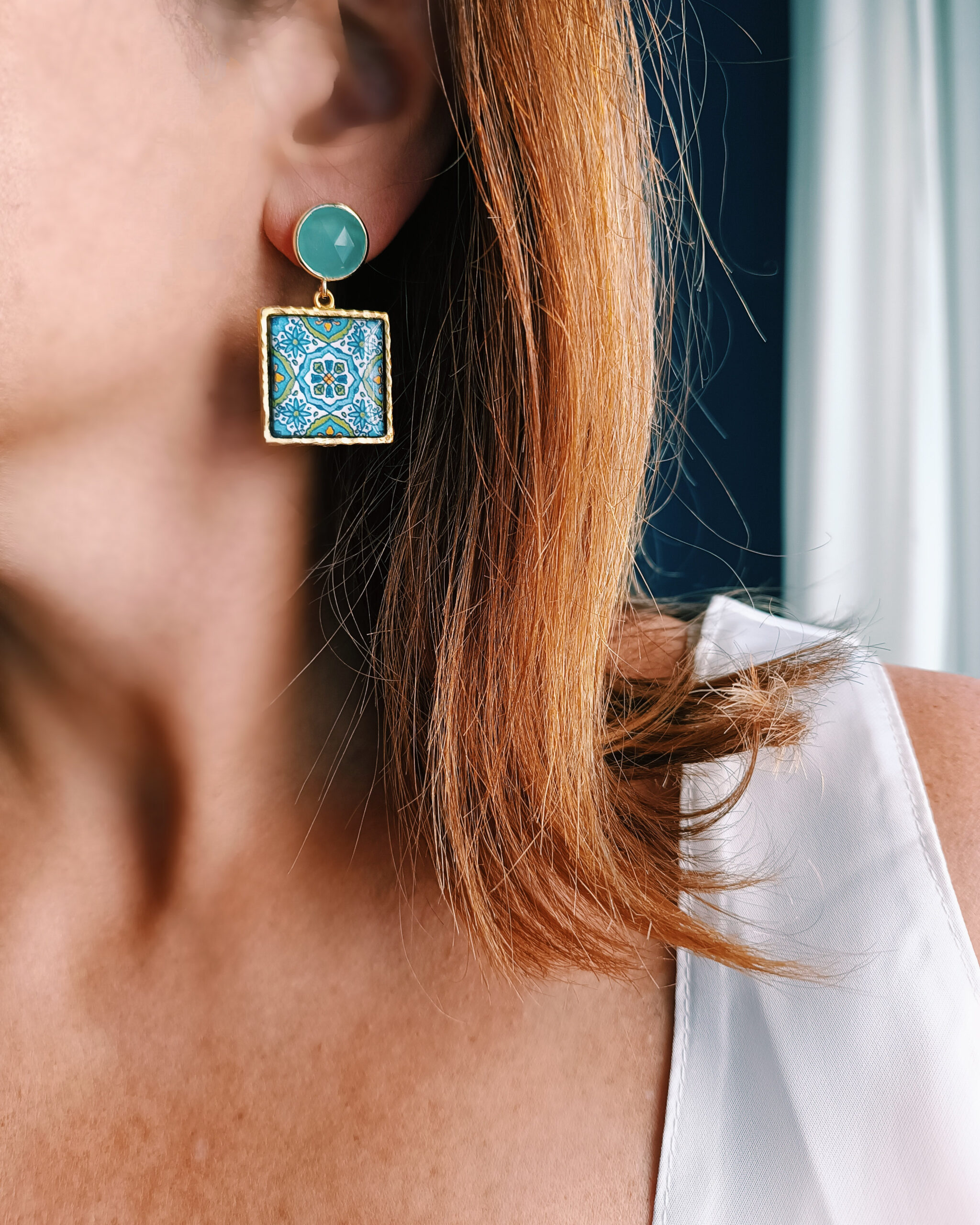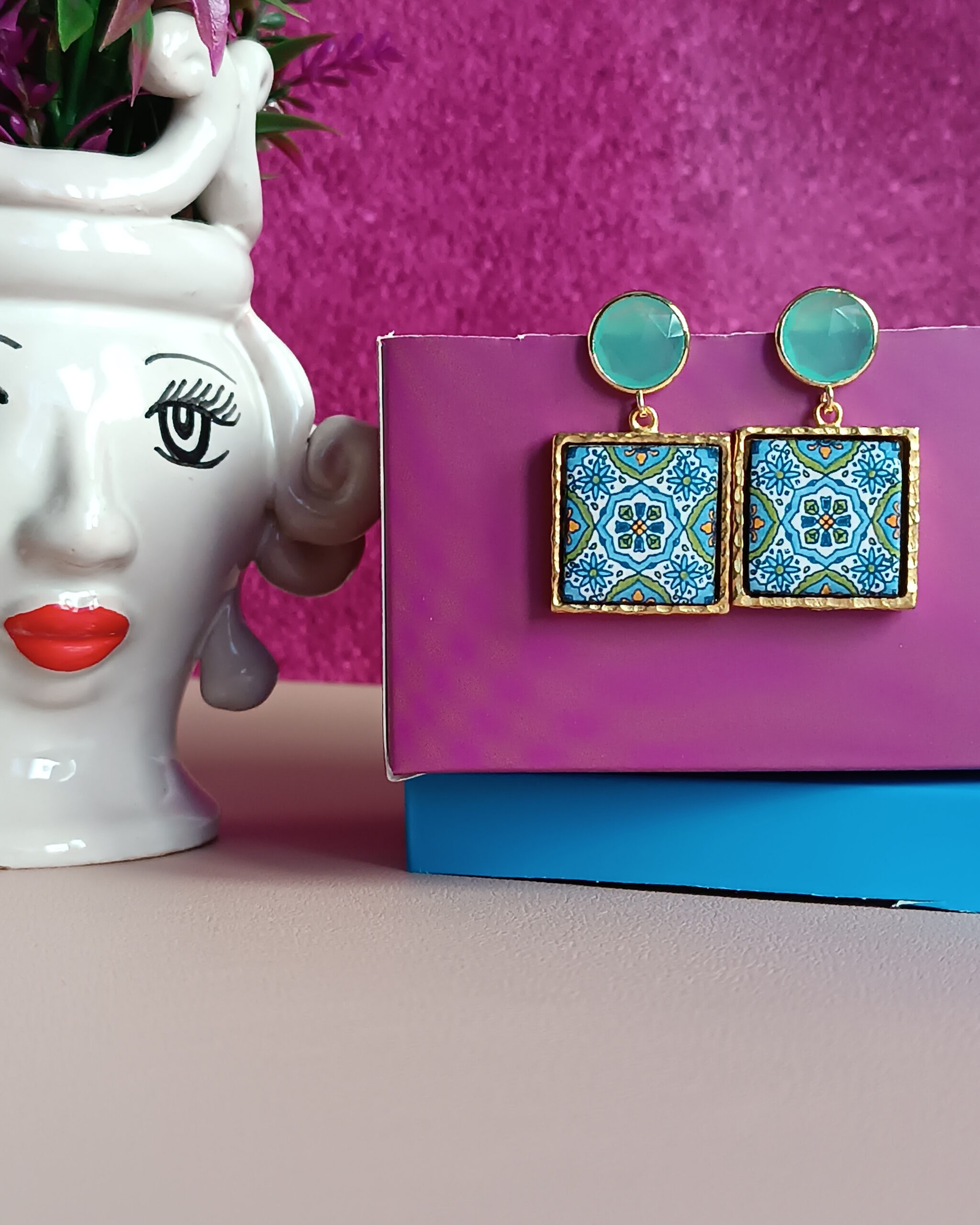 In addition to typical Sicilian symbols, we also love to offer in earrings the same reproductions of Caltagirone majolica tiles that are often found as decorations on the walls of Sicilian homes.