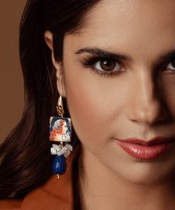 Sicily Ceramic Tile Earrings with Blue Drops