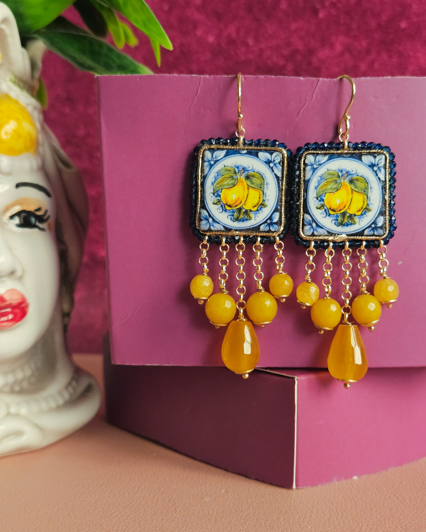 Sicily Ceramic Tile Earrings with Green Stones (Copy)