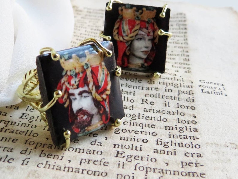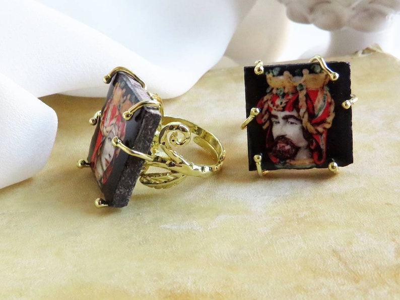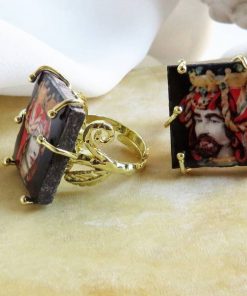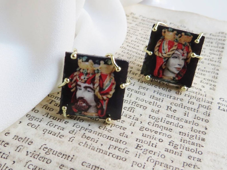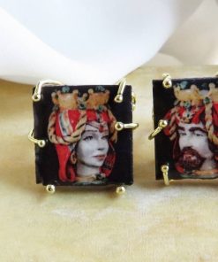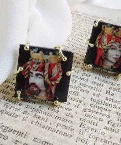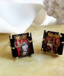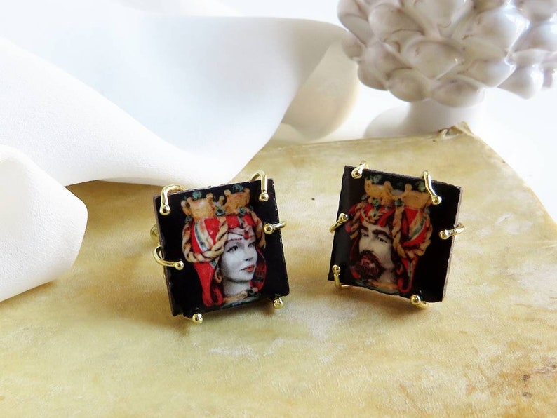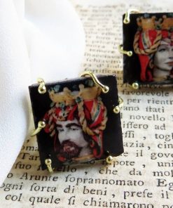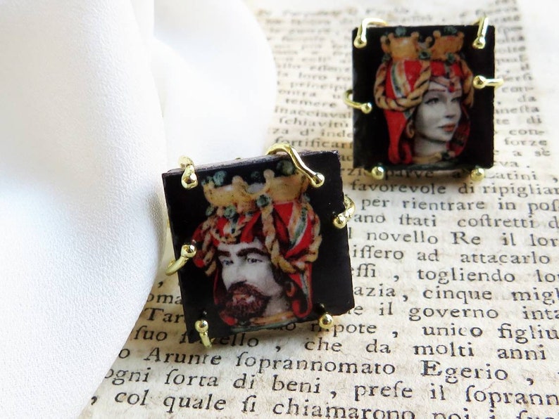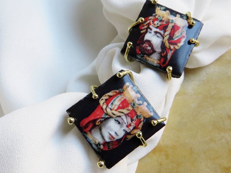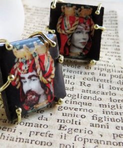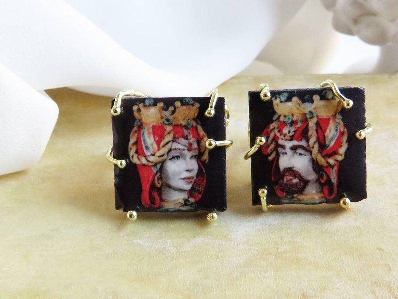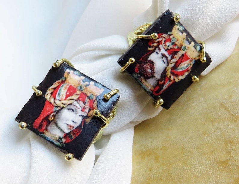 Delightful square ring with lava stone and Caltagirone ceramic tile featuring one of the typical symbols of Sicilian culture: Moor’s heads.