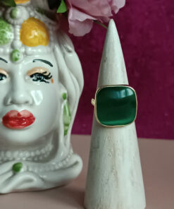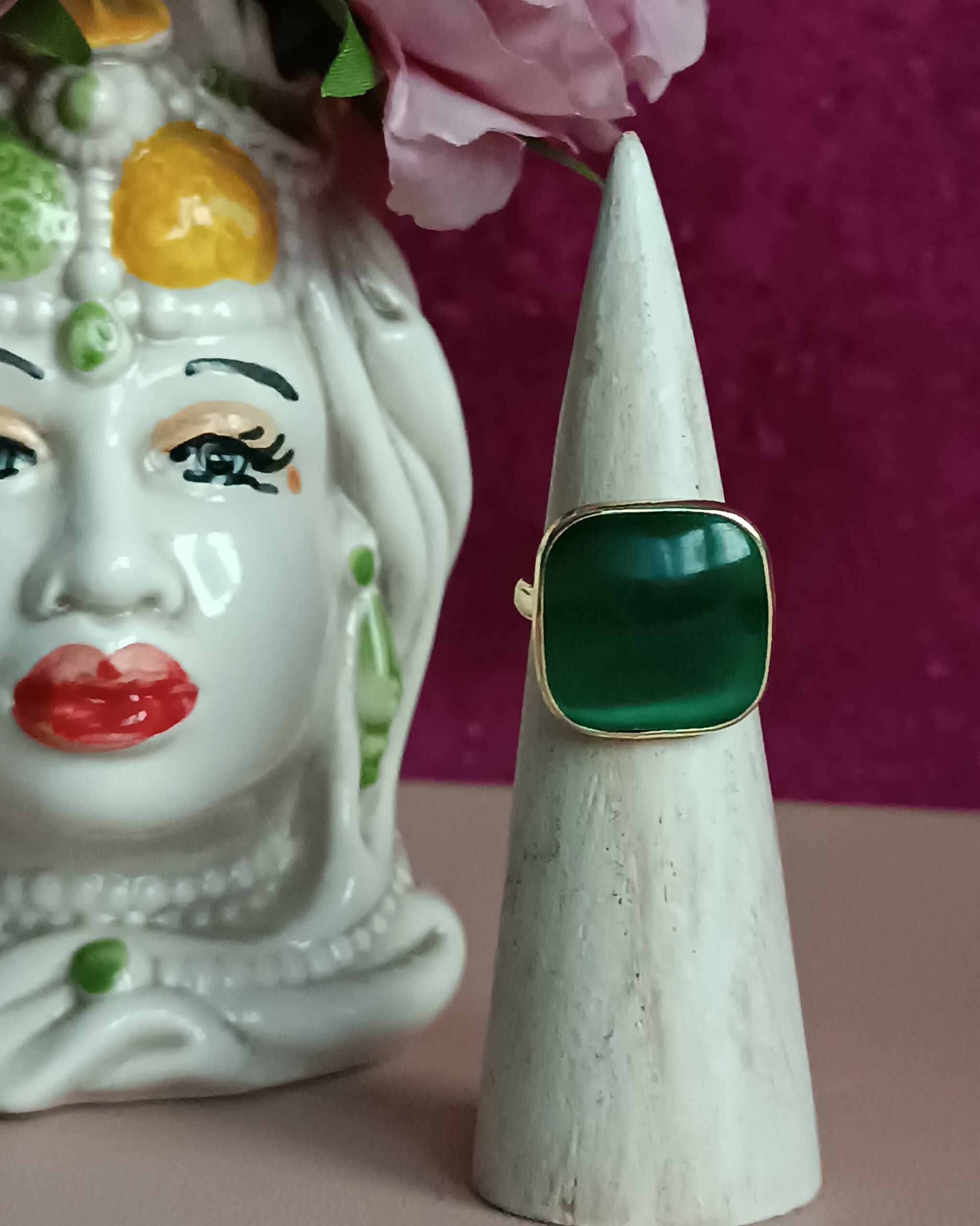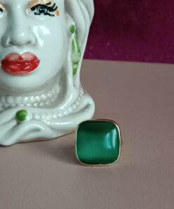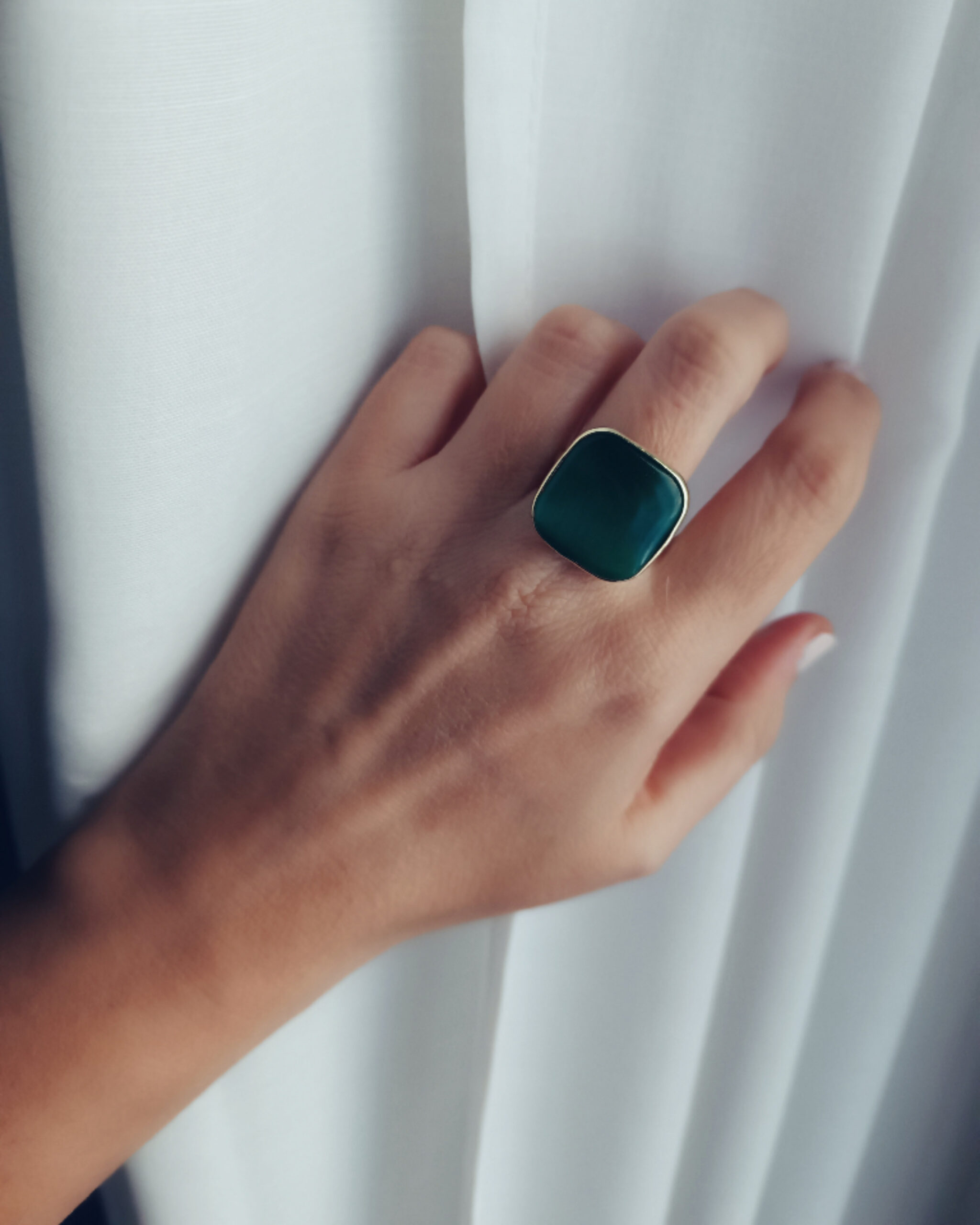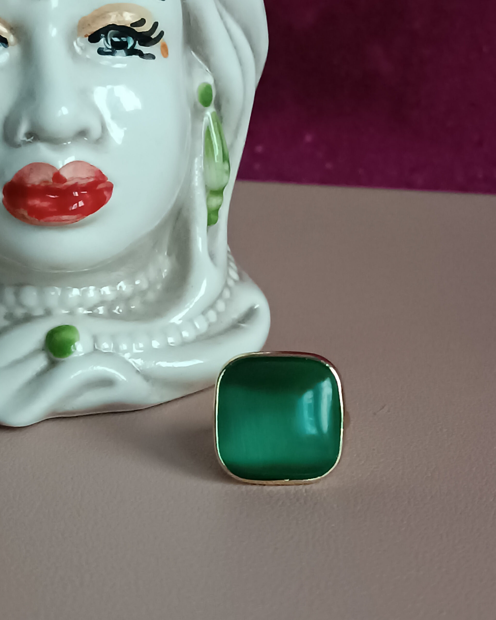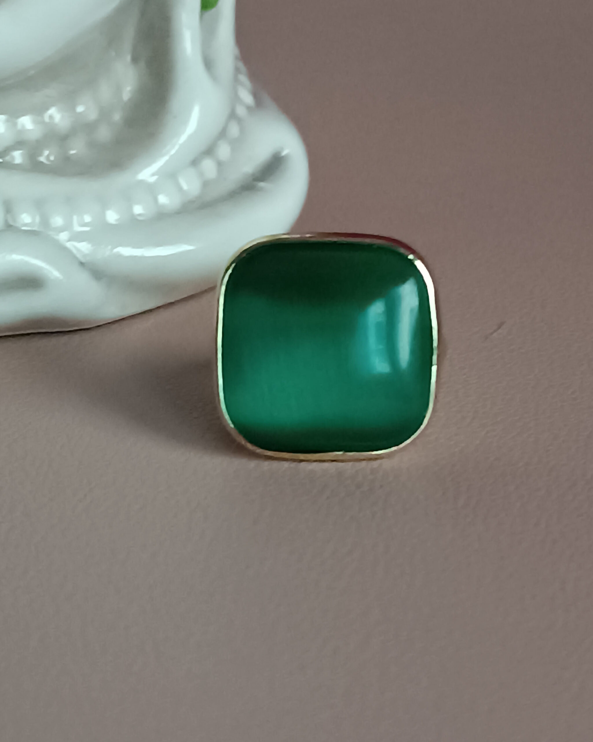 Very stylish ring handmade from Brass and square Chrysoberyl stone, green color.
