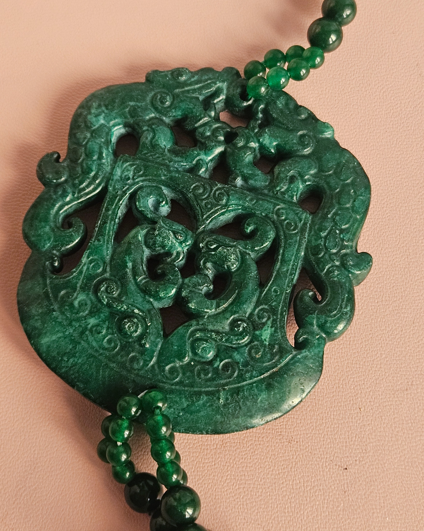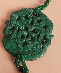 Statement Double Necklace with Green Stones, Green Pearls and Natural Green Jade