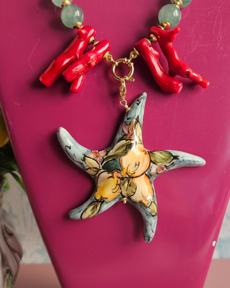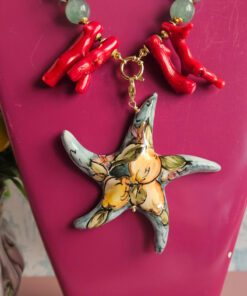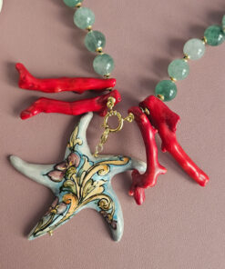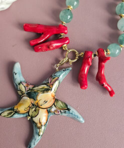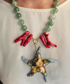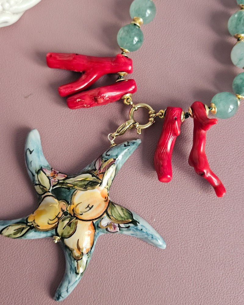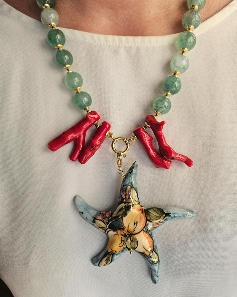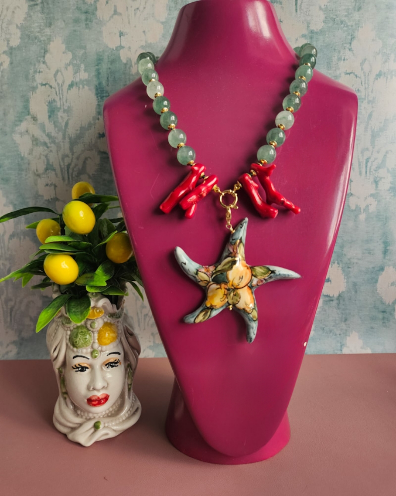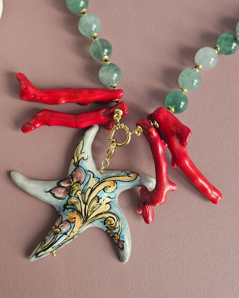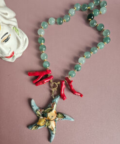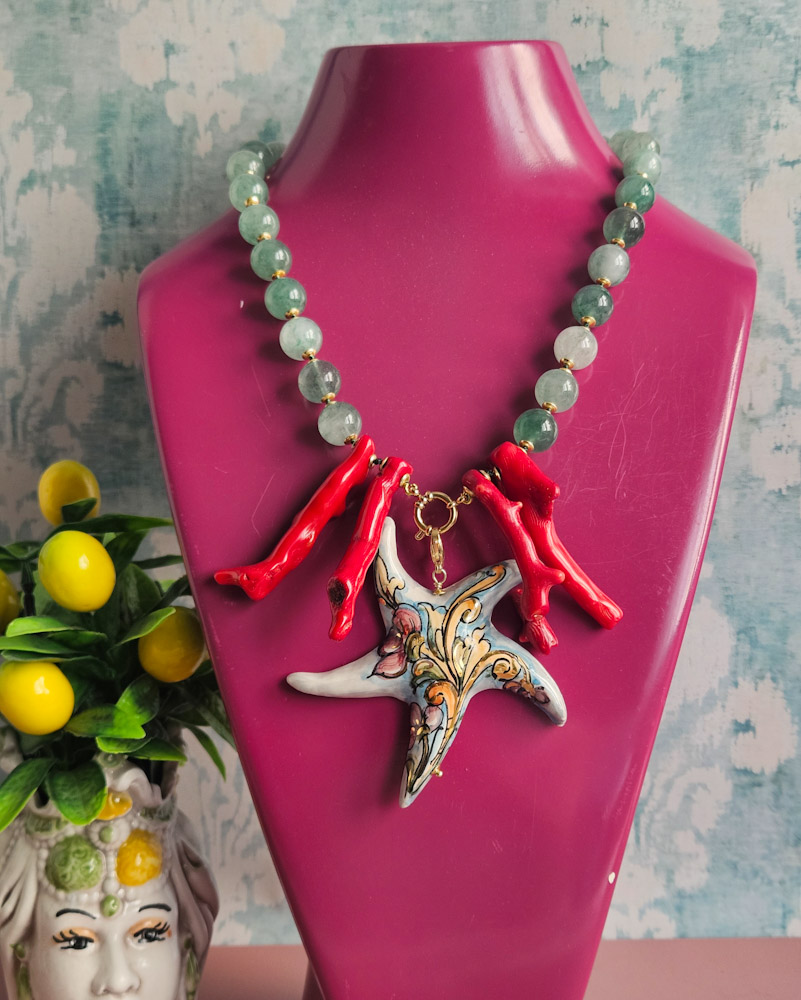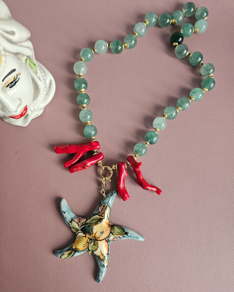 Statement Necklace with Green Stones and Sicilian Ceramic Starfish