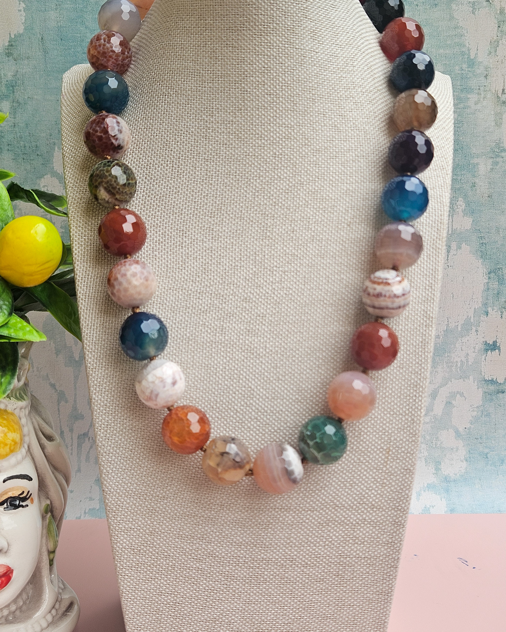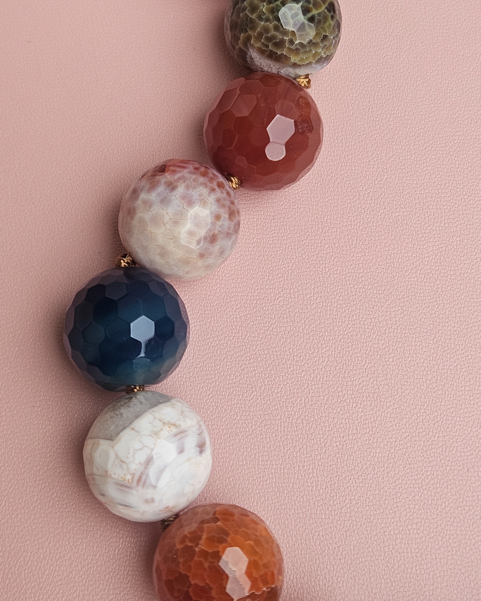 A choker necklace of authentic beauty, made with natural fire agate in splendid warm and vibrant shades. Each stone, with its unique veins and luminous facets, tells a different story, making each piece absolutely unique and unrepeatable.