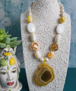 This necklace is perfect for those who love statement jewelry with sophisticated charm, capable of embellishing both an everyday look with a shirt or light dress and a more elegant outfit for special occasions. A unique piece that will enhance your style with refinement.